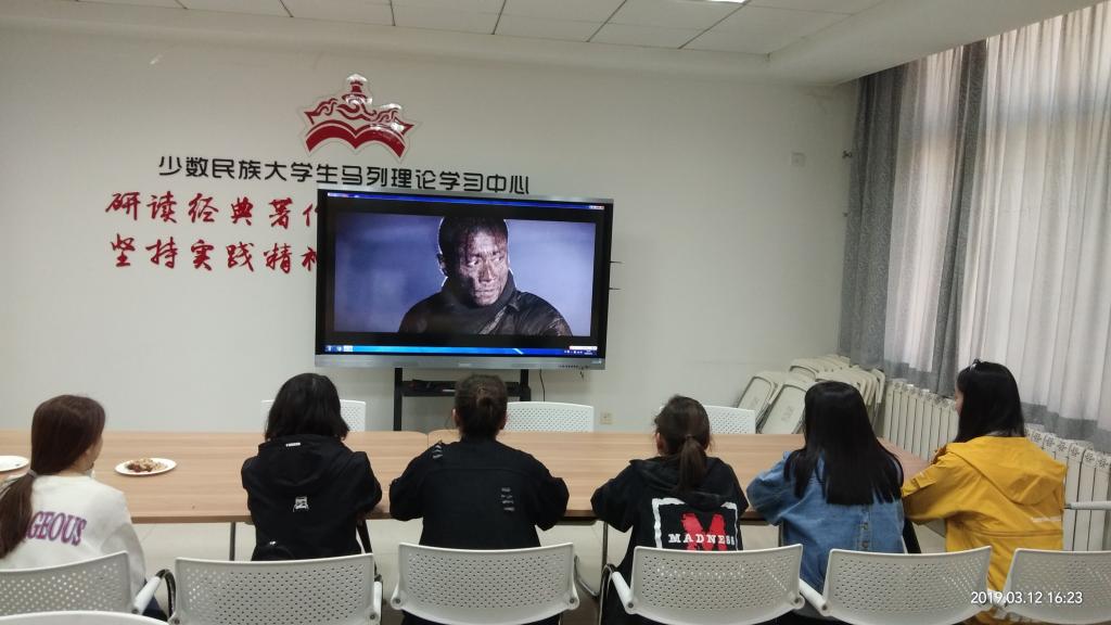 3月12日下午,“石榴籽”工作坊在雁塔校区六附楼少数民族大学生马列理论学习中心组织学生开展了“经典影音播放”活动,学生一起观看革命影片——《集结号》。