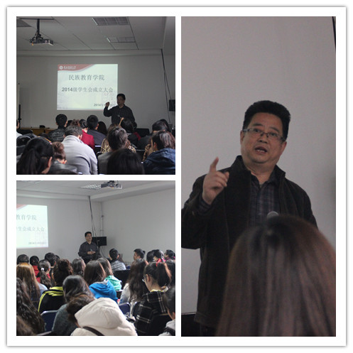 2014年11月5日下午,我院在6附楼311室召开了2014级学生会成立大会。本科预科学生会及民硕研究生会近一百名学生参加了会议。书记郑生忠出席了大会,并针对“如何做一名合格的大学学生干部的问题”,做了一场生动的报告。