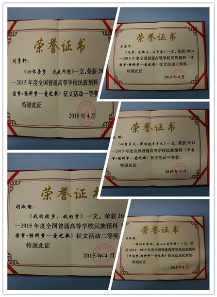 4月28,2015年全国普通高校民族预科教育教学改革研讨与教学观摩会在西南民族大学举行,来自全国各地21所高校少数民族预科教育机构的50余位代表参加了会议。我院副院长窦文阳代表学院参加此次观摩会,并领取了我院学生在2015年“中国梦•预科梦”征文比赛中的获奖证书。