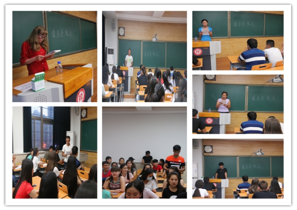 在教学九楼9705教室举办了2015级两年制预科生的“读书交流会”。主持人介绍举办此次交流会的目的是推广读书精神,让同学们对书籍有一定的认识,同时丰富同学们的课余生活。