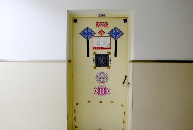 在辅导员热依木老师的带领下,首先来到12-13号男生学生宿舍进行检查。检查过程中,郑生忠书记特意强调要注重学生宿舍的安全问题,并不时的询问宿舍同学关于安全用电、防盗防骗等日常宿舍生活中需要掌握的知识和技能,并对发现的问题给予指正,同时仔细的查看了学生的作息时间安排表,望同学们合理安排时间做到劳逸结合。杨维平老师关切的叮嘱男同学要勤通风,勤晾晒衣服和被子。随后又到2-3号女生宿舍进行检查,2207宿舍的同学还拿出家乡特产请各位老师品尝。各位评委各司其责,对宿舍的洗漱用品的摆放、宿舍制度列表、环境卫生等进行查看。段亚绒老师和同学们还亲切的交谈了学习和生活方面的话题。通过前期的宿舍装扮后,大部分宿舍布置的干净整洁,彰显宿舍文化与民族特色,尤其是宿舍全家福和宿舍文化天地的设计给人留下一种温馨的感觉。从内务整理到宿舍文化定位,从门面装饰到内部设计,特色鲜明的宿舍装饰无不体现了同宿舍不同民族成员之间浓厚的同窗友谊。