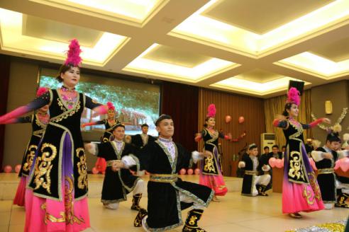 是一个相亲相爱的大家庭,各少数民族在大家庭中和睦相处,团结互爱。穿插其中的互动环节《猜猜看》拉近了师生距离,同学们积极参与,会场气氛热烈。最后,晚会在哈萨克族舞《歌舞青春》的欢快氛围中接近尾声。晚会临近结束,学院党总支副书记窦文阳对此次晚会给予肯定,他认为此次晚会是我院各民族学生干部精心准备的,将各民族风采很好地呈现出来,也展示了我院少数民族学生积极向上的精神面貌,希望同学们再接再厉,潜心学习,努力提高自己的综合素质!