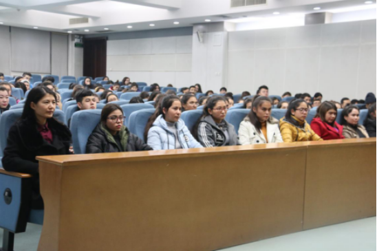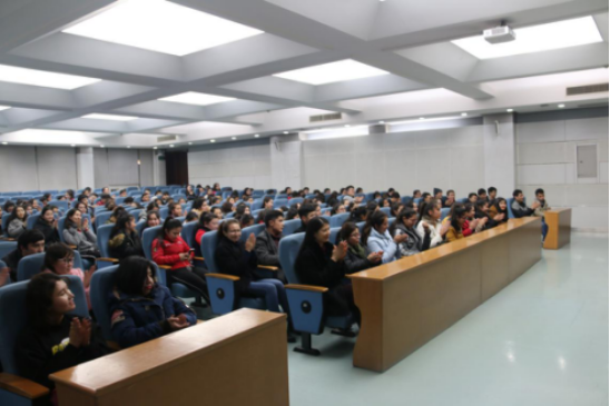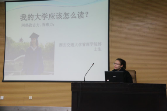 12月2日 晚七点,我院职业生涯规划指导讲座之“我的大学应该怎么读?”在我校雁塔校区崇鋈楼学思堂开讲。讲座由新疆内派服务管理教师、西安交通大学管理学院博士生、全国中级就业指导师、全国二级心理咨询师阿热孜古力·吾布力老师担任主讲。由新疆内派服务管理教师迪力努尔主持,陕西省委高教工委学工部副部长库来西‧依不拉音、我校学生处挂职干部伊尔夏提老师及我院新疆籍预科学生参加了讲座。