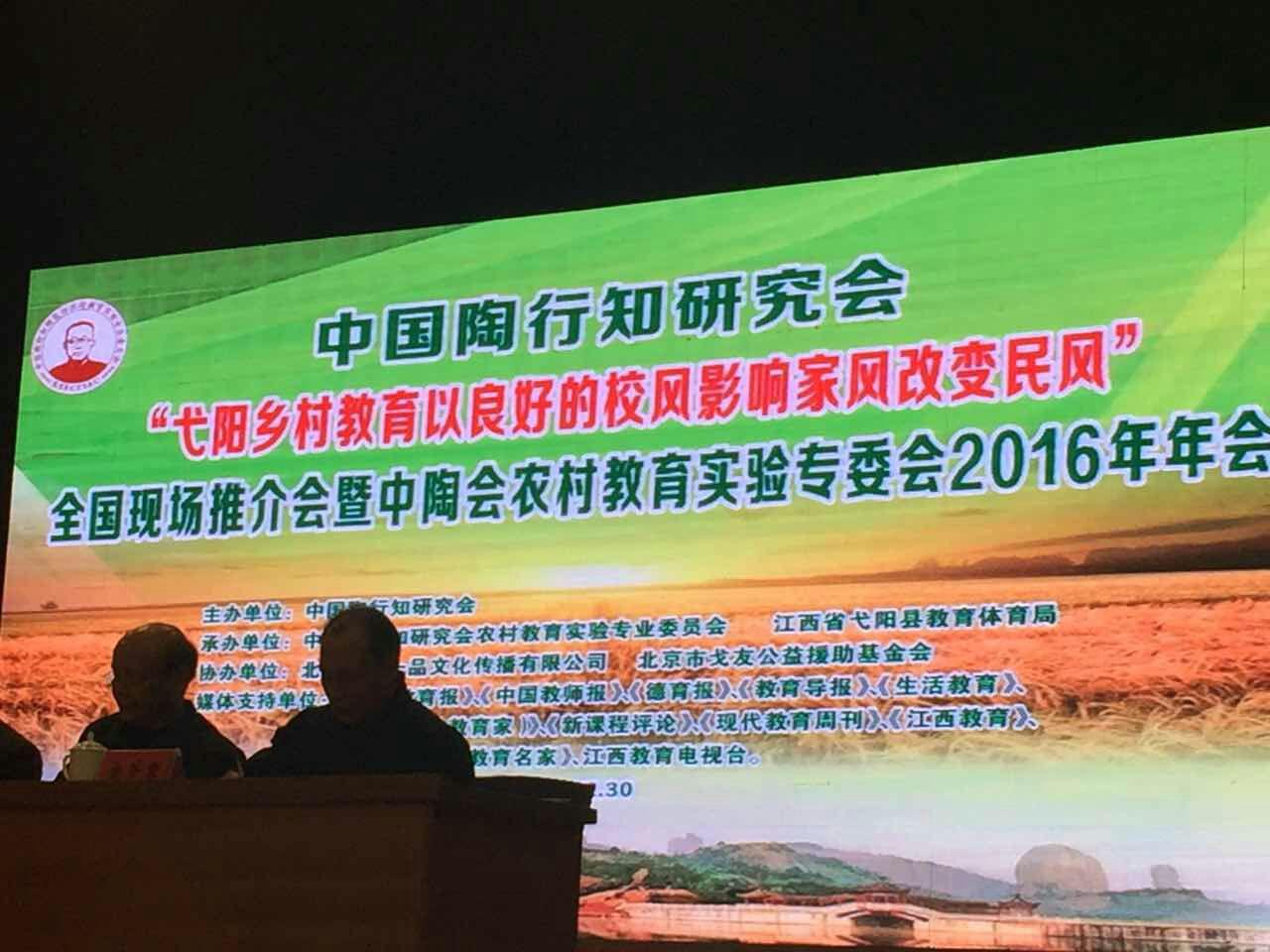 12月29日中国陶行知研究会“弋阳乡村教育以良好的校风影响家风改变民风”全国现场推介会暨中陶会农村教育实验专业委员会2016年年会在美丽的革命老区、伟大的无产阶级革命家方志敏烈士的家乡江西弋阳举行。