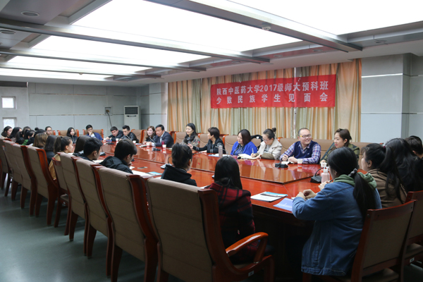 辅导员热依木以及目标院校为陕西中医药大学的20名少数民族预科生。见面会由陕西中医药大学学工部部长赵娴主持。