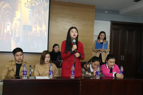 交流会上,辅导员热依木老师向大家介绍了莅临本次交流会的各位评委和老师,并给大家简要回顾了上期读书交流会的主要内容和成果。本次读书交流会主要以小组讨论答题的方式进行,各班同学共派出四组代表参加答题。交流会共分为四个环节,大家通过观看幻灯片来回顾《巴黎圣母院》这本书的作者、主题思想、情节发展等相关内容及问题,之后以抽签的方式选出每组回答问题的同学,评委组通过学生讲解内容、语言表达、形象风度、整体印象、会场效果等多方面进行综合评分。经过评委老师热烈的讨论和同学们积极的答题,最终由预科5班对夏阿力带领的第一组同学荣获本次交流会的冠军,预科7班加沙尔带领的第二组获得亚军,预科6班塔恩努尔带领的第三组获得季军。