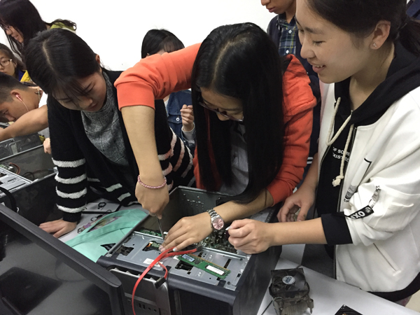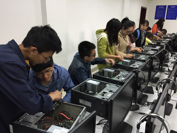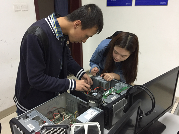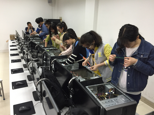 在理论知识学习阶段,我院计算机指导老师刘丁组织学生采用分组搜集资料和集中讲解讨论的形式,使同学们对计算机硬件设备的外观、性能指标、内部结构和功能有了全面认识。讨论环节中,同学们围绕搜集的计算机硬件新技术、新功能进行了讨论,对计算机硬件未来的发展趋势有了新的了解。最后,结合计算机组装实践,使同学们进一步掌握了计算机硬件的安装知识和简单的计算机故障处理方法。