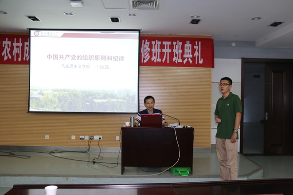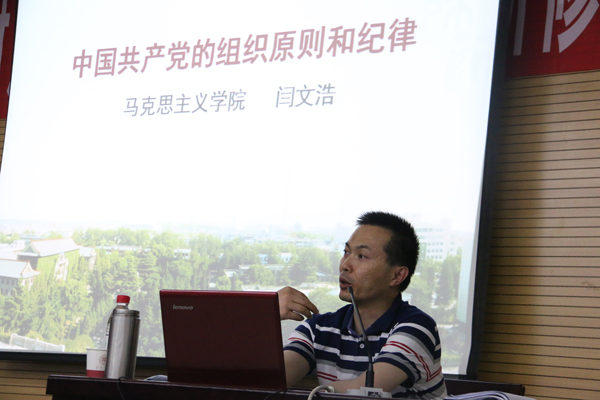 2017年党课培训班第四讲在雁塔新校区崇鋈楼思齐堂成功举行。68位入党积极分子参与培训,马克思主义学院党委书记闫文浩围绕“中国共产党的组织原则和纪律”主题进行授课,党课由学院兼职辅导员梁鹏遥主持。