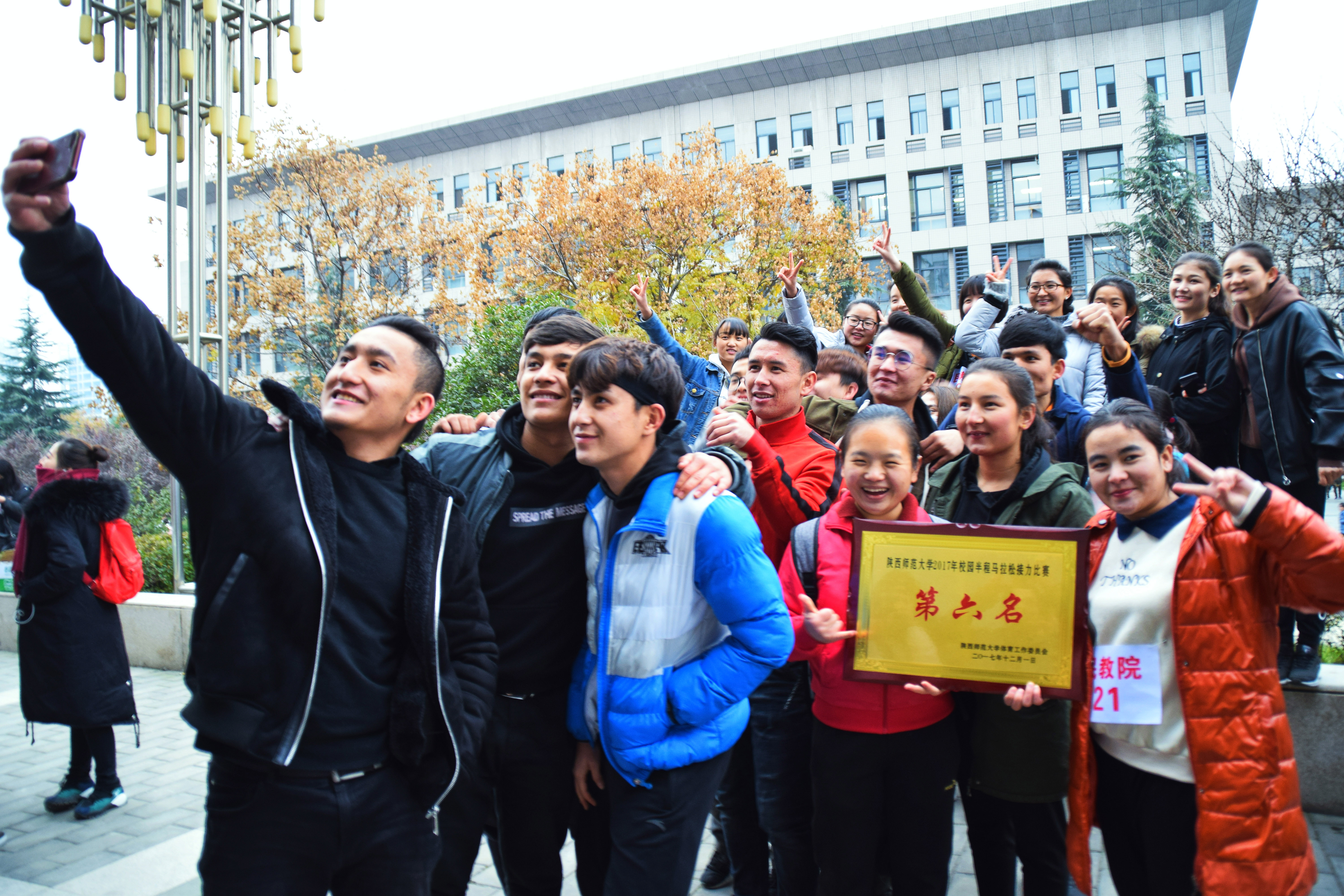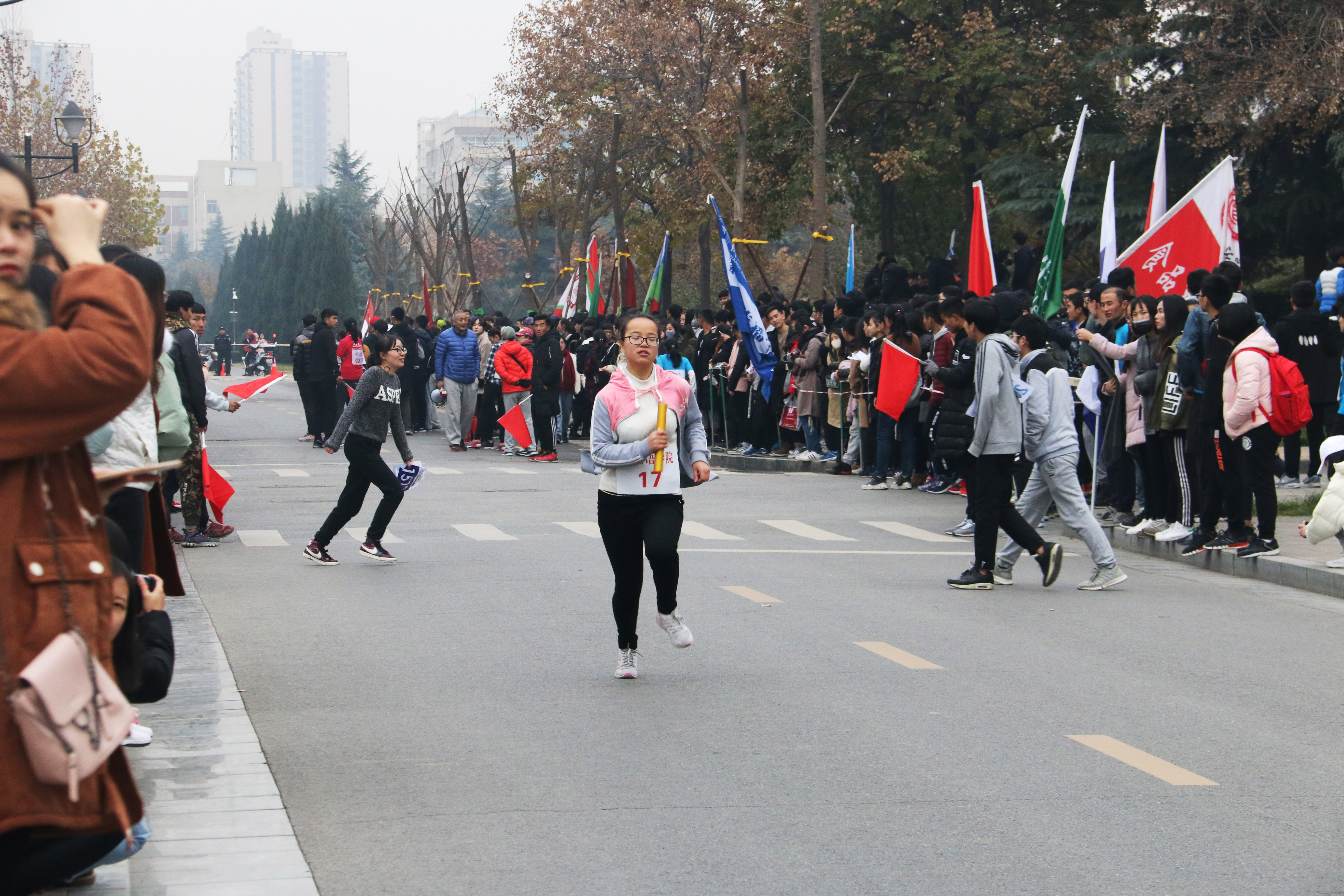 为了丰富我校学生体育文化生活,让学生走出教室,走向操场,强生健体,提高综合身体素质,12月1日下午,我校2017年纪念“一二·九运动”暨“阳光体育”半程马拉松接力比赛在长安校区举行。我院运动员们奋力拼搏,全力以赴,喜获第六名的优秀成绩。我院团委书记赵超、2017级专兼职辅导员及学院各班级代表到现场观看比赛并为运动员们加油助威。