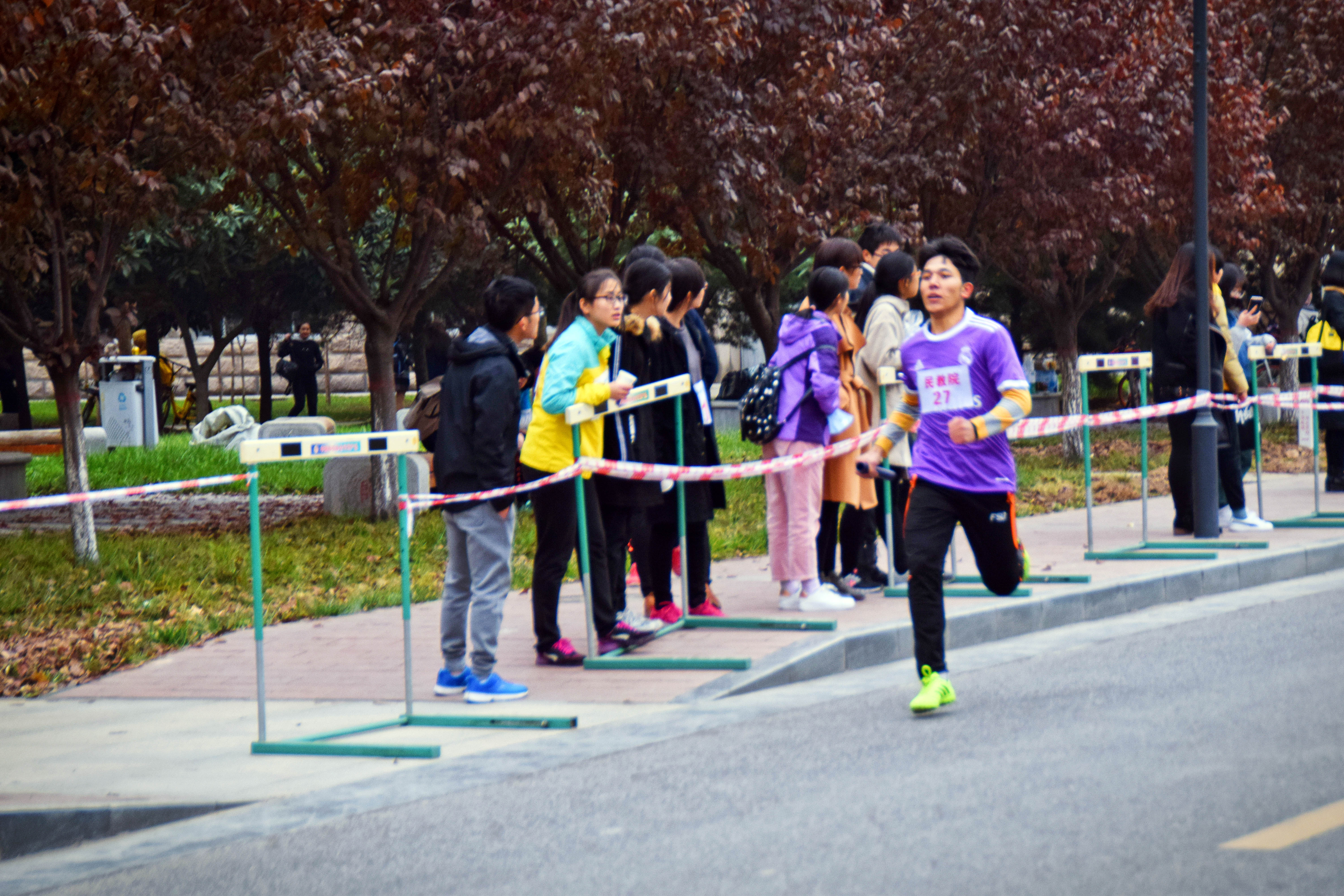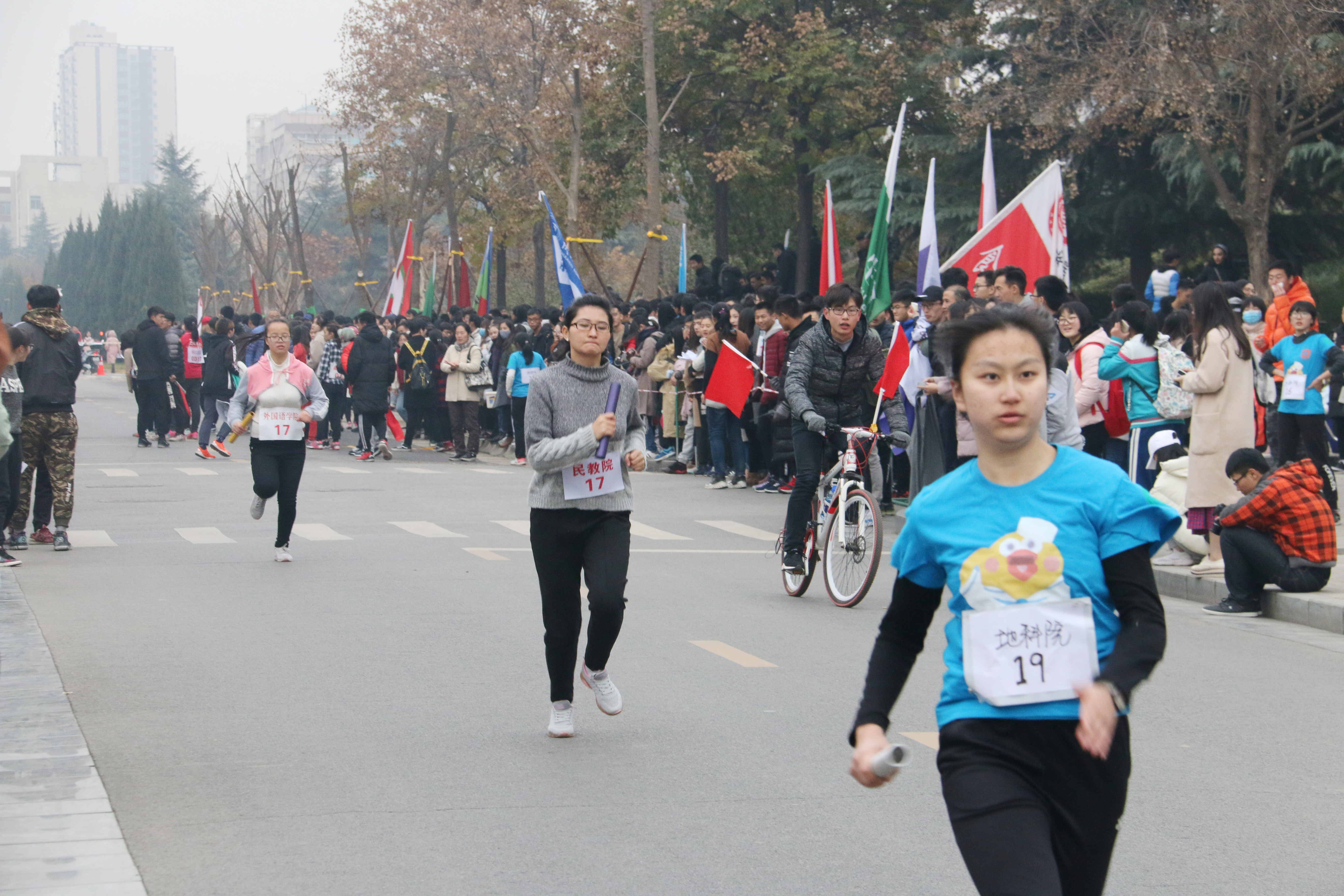 此次活动是我校一年一度的传统赛事。比赛以接力形式进行,全程21097.5米(半程马拉松)。全校共有20支代表队,将近640多名运动员参加。由我院派出的运动员女生22人,男生10人参加比赛。比赛还未开始,准备就绪的比赛现场就已人头攒动,各院旗帜招展,五颜六色地点缀在校园里,格外引人注目。随着一声枪响,比赛正式开始。蓄势待发的运动员们迈着矫健的步伐向前冲去。天气寒冷,北风萧萧,依旧阻挡不了运动员们奋力奔跑的身影。在这场速度与毅力的较量中,我院运动员们一个接一个地奋力奔跑着,每个脚步都伴着赛道两旁整齐有力的加油声,满怀激情,斗志昂扬,弘扬着新时代青年大学生的拼搏精神。接力棒传递着必胜的信念,传递着团结奋进的精神。老师和同学们的欢呼声,呐喊声也此起彼伏。志愿服务队的同学为运动员们准备好温水和饮料,提供了“温暖”的保障。在大家的共同努力下,我院最终喜获第六名。