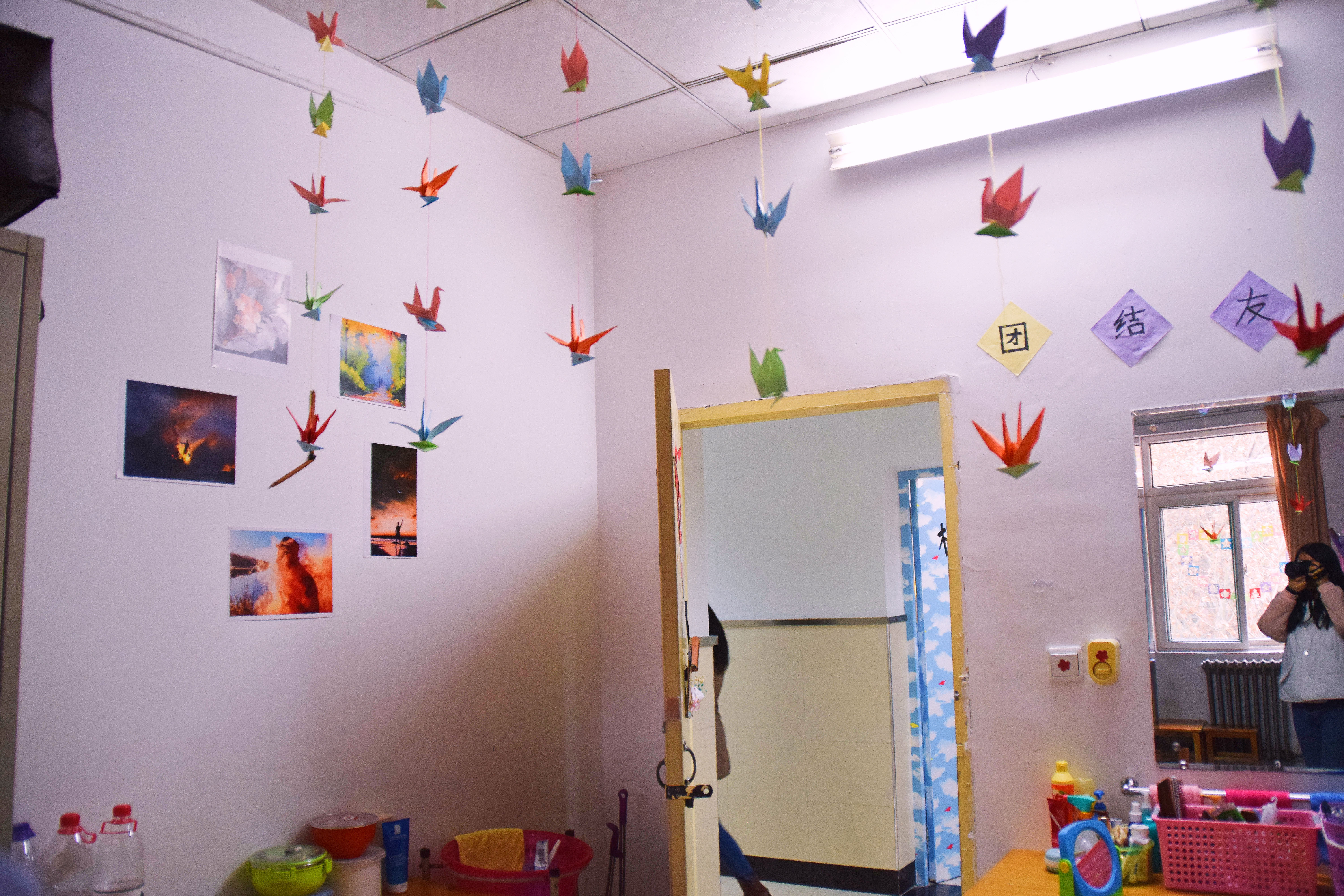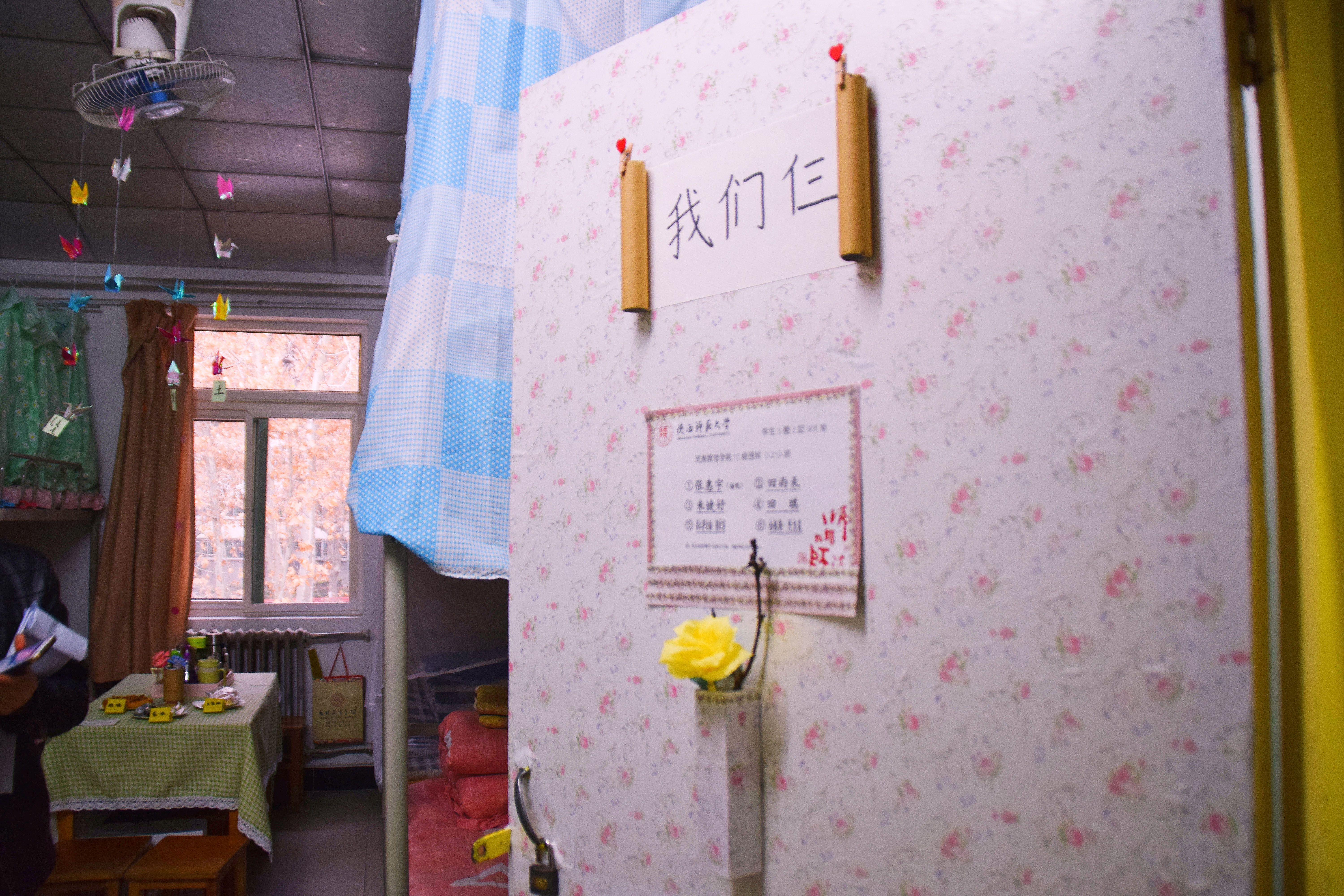 12月25日下午3点,宿舍文化节的评比活动正式开始。老师们及生活部干部先后走访参观了男生4-5号学生宿舍楼和2-3号女生宿舍楼。一进楼道,便能看见走廊上的相框里有学生们青春洋溢的笑脸,一望到小粉楼2栋三楼的走廊尽头,色彩艳丽的民族卡通画象扑入眼帘,那些别出心裁的宿舍主题风格和装扮创意更是令人眼前一亮,这些无一不显示出宿舍文化节浓厚的气氛。还有的宿舍墙上挂着的艾德莱斯绸,铺着民族风花纹桌布的桌子上摆放的馕,墙面上挂着的马头琴,都将民族文化融入生活之中。一些宿舍里挂着同学们手绘的人像画,精美的手工叠纸,得到了各位参审评委老师们的一致称赞。在参观过程中,老师们不仅对同学们参与宿舍文化节的热情表示肯定,同时对大家在宿舍评比中发现的问题提出了指导性的建议。