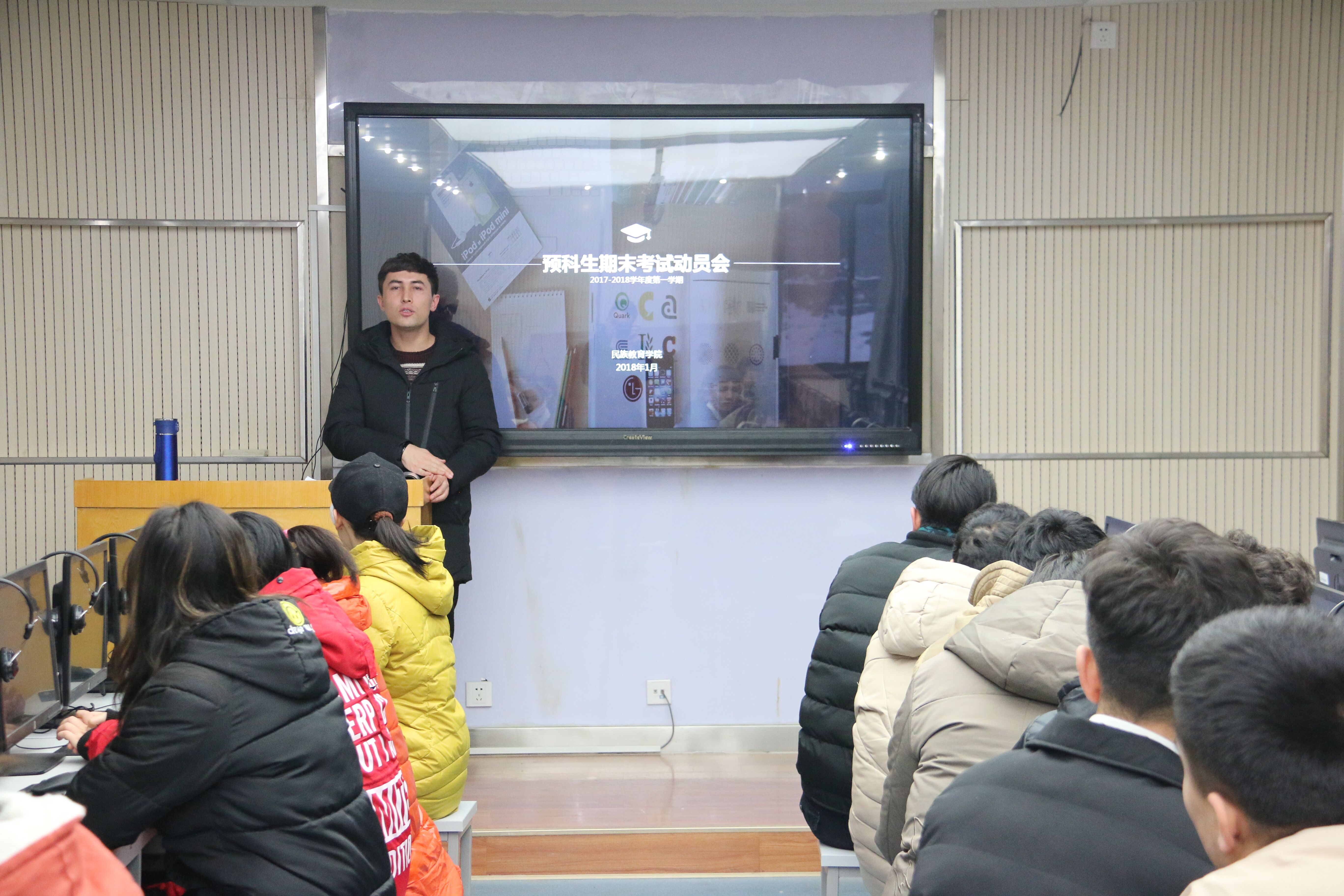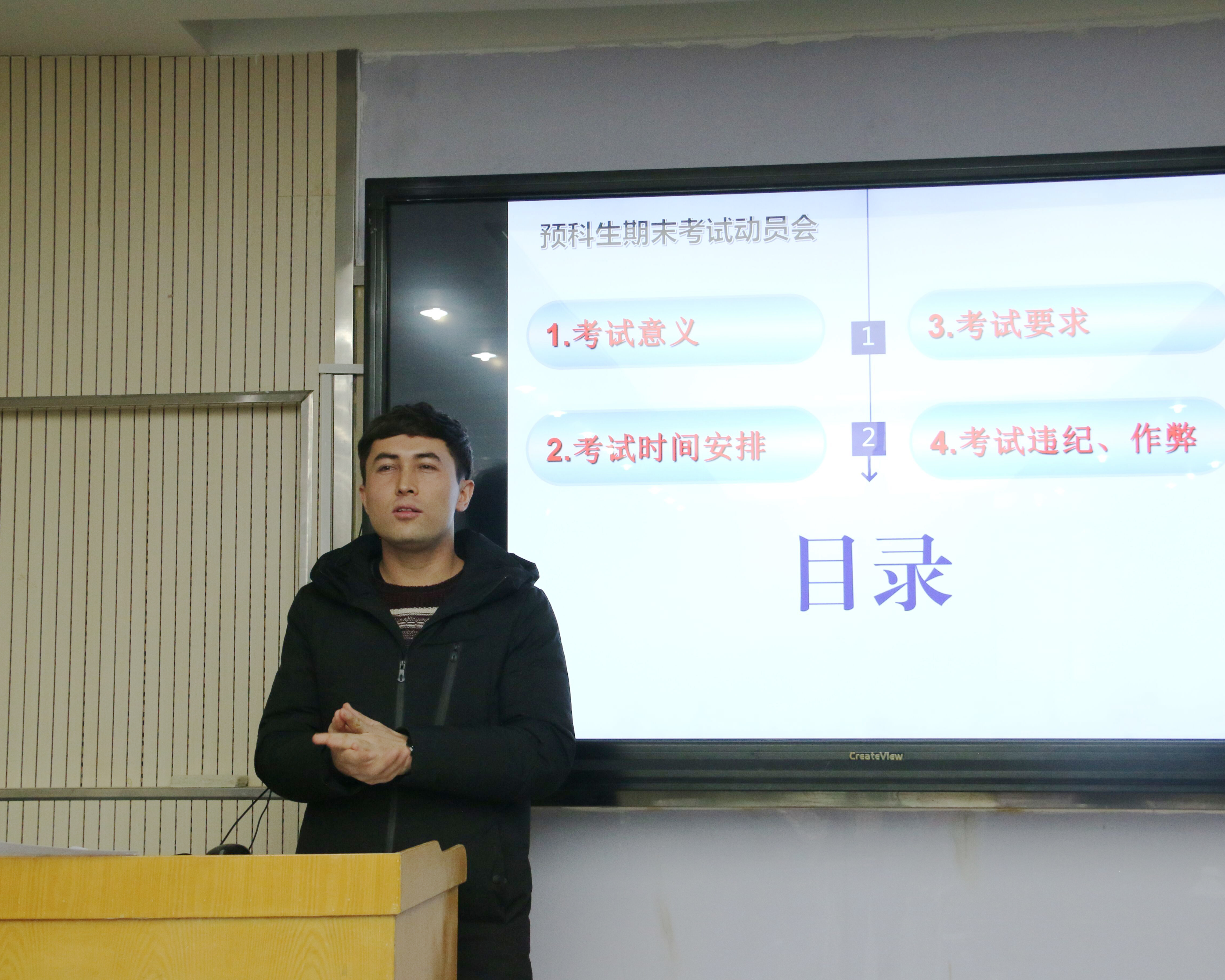 研究生学籍管理实施细则》,提醒大家旷考和替考的严重性,劝诫同学们切勿旷考或替考,向预科学生说明了考试的公平、公正以及期末考试的重要性,提出“诚信考试,公平竞争”,并希望同学们能从被动学习转向主动学习,遵守考试纪律,端正考风考纪,认真扎实复习,做到不作弊、不挂科,为预科结业升学做好充分的准备。辅导员们强调同学们要抱着一种神圣的态度对待考试,在公平公正的情况下,发挥出真实水平,这既是对老师和同学的尊重也是对自己的尊重。动员会上,学生们签订了考试承诺书,发放了透明考试袋。