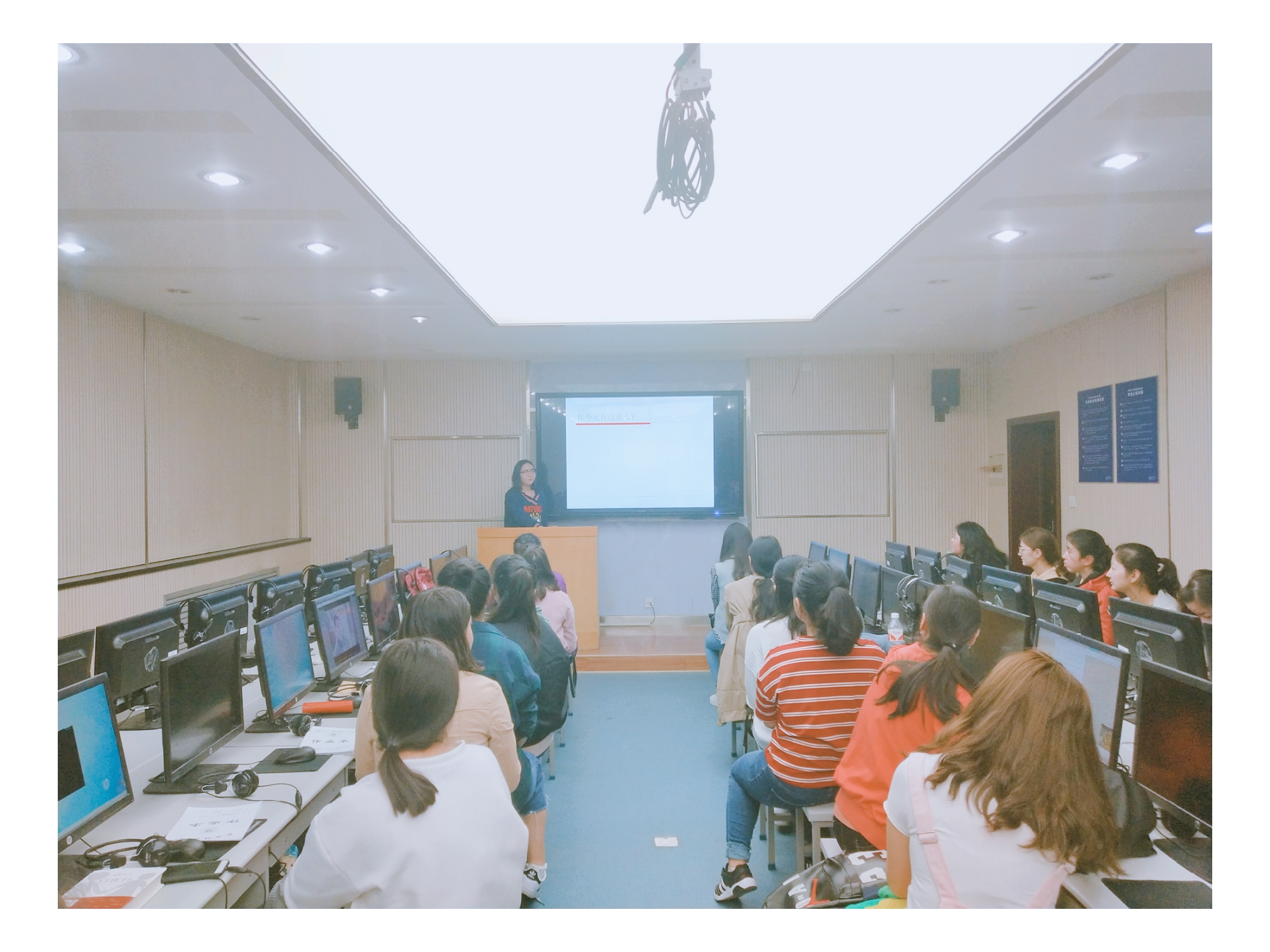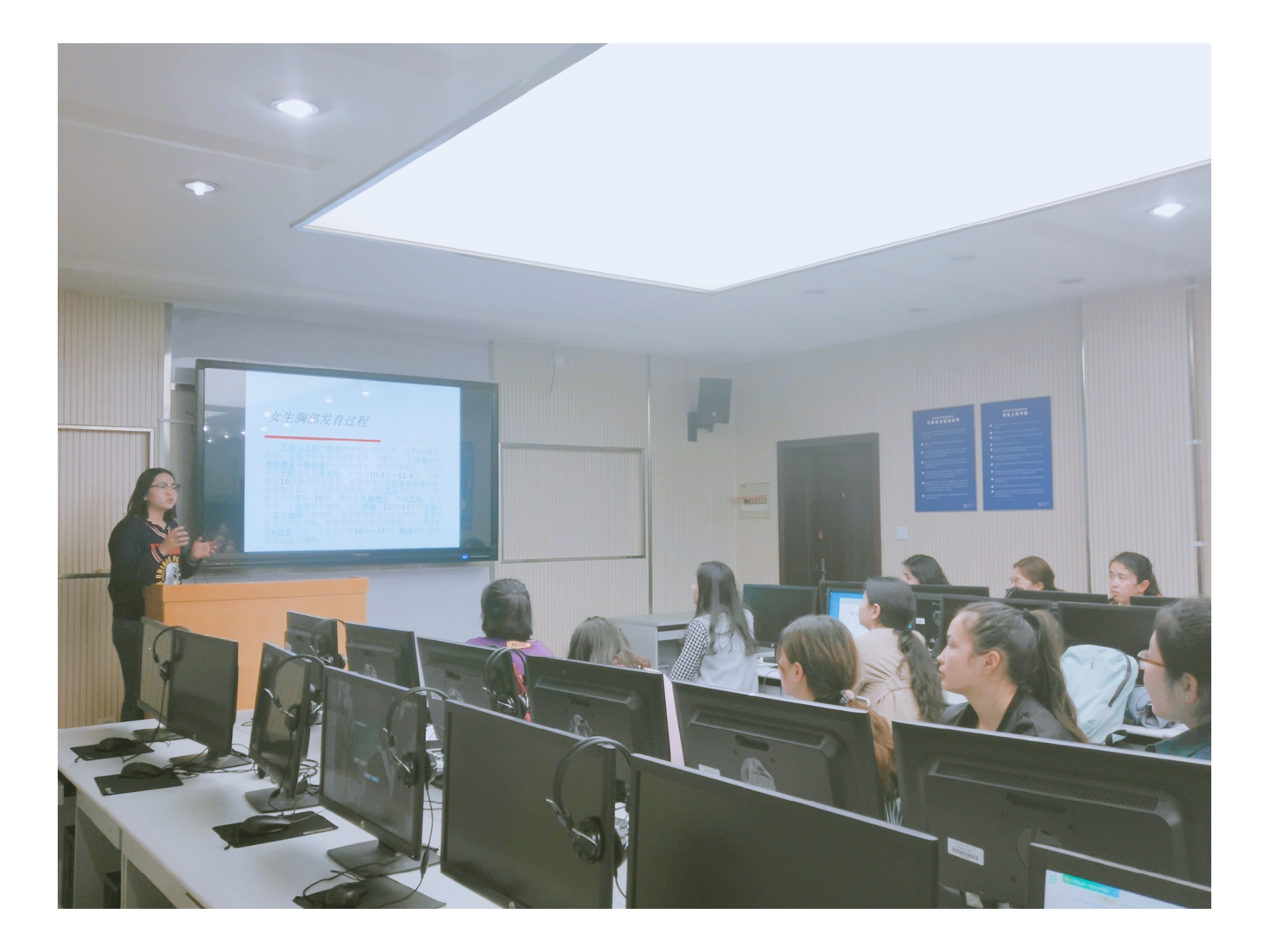 六附楼208教室进行了一场“静心听花开”——女性性心理健康教育为主题的班会,预科5班全体女生参加此次活动。