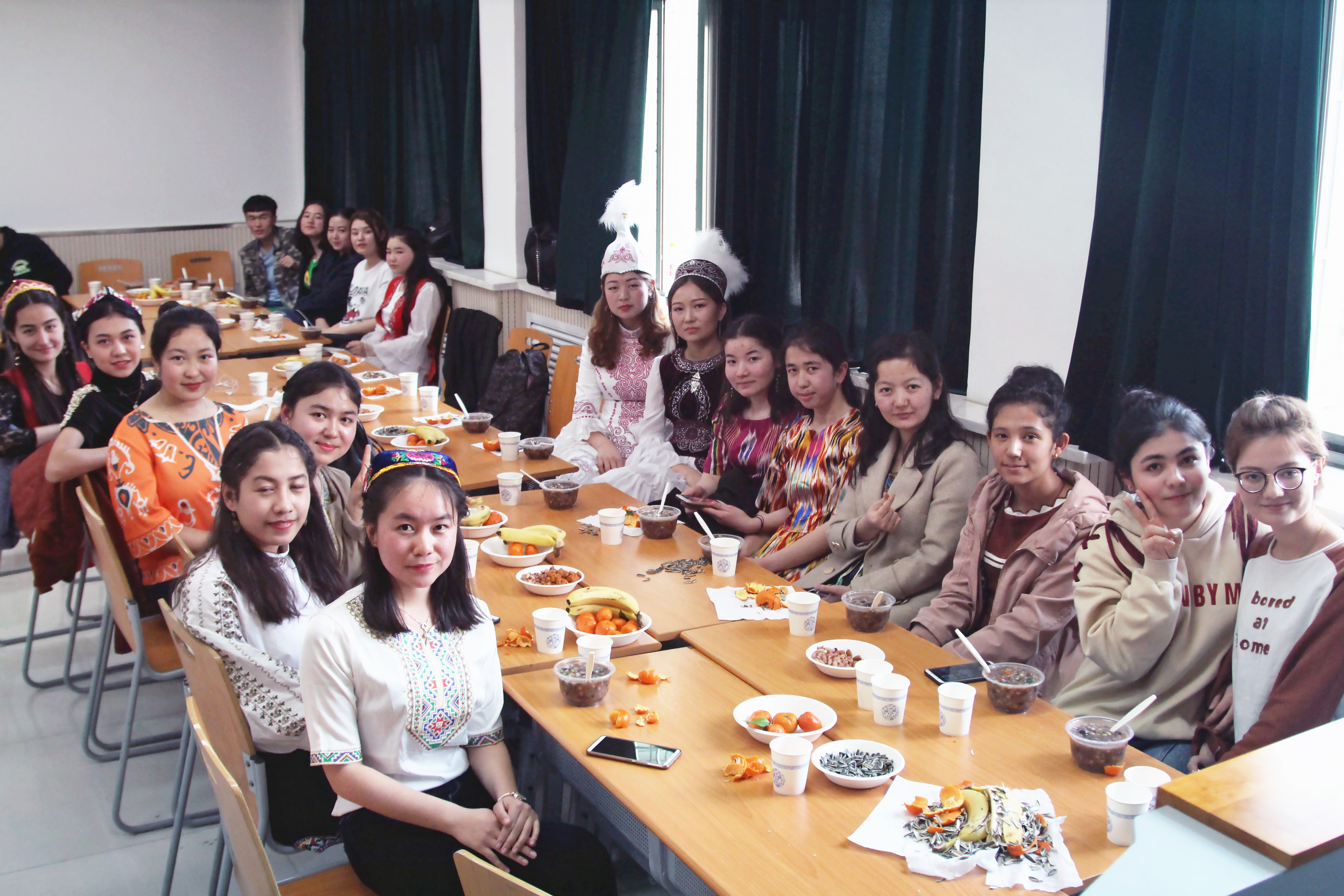 为此,班委十分重视这次的活动准备,并事先准备好了“诺鲁孜饭”。诺鲁孜饭由五谷、羊肉等熬制而成,具有“五谷丰登”的美好期望,是代表性的节日佳肴。同学们穿着具有民族特色的服装,如那句歌词“56个民族56朵花”所说一般绽放,现场极具喜气洋洋的活动氛围,同学们期待满满。