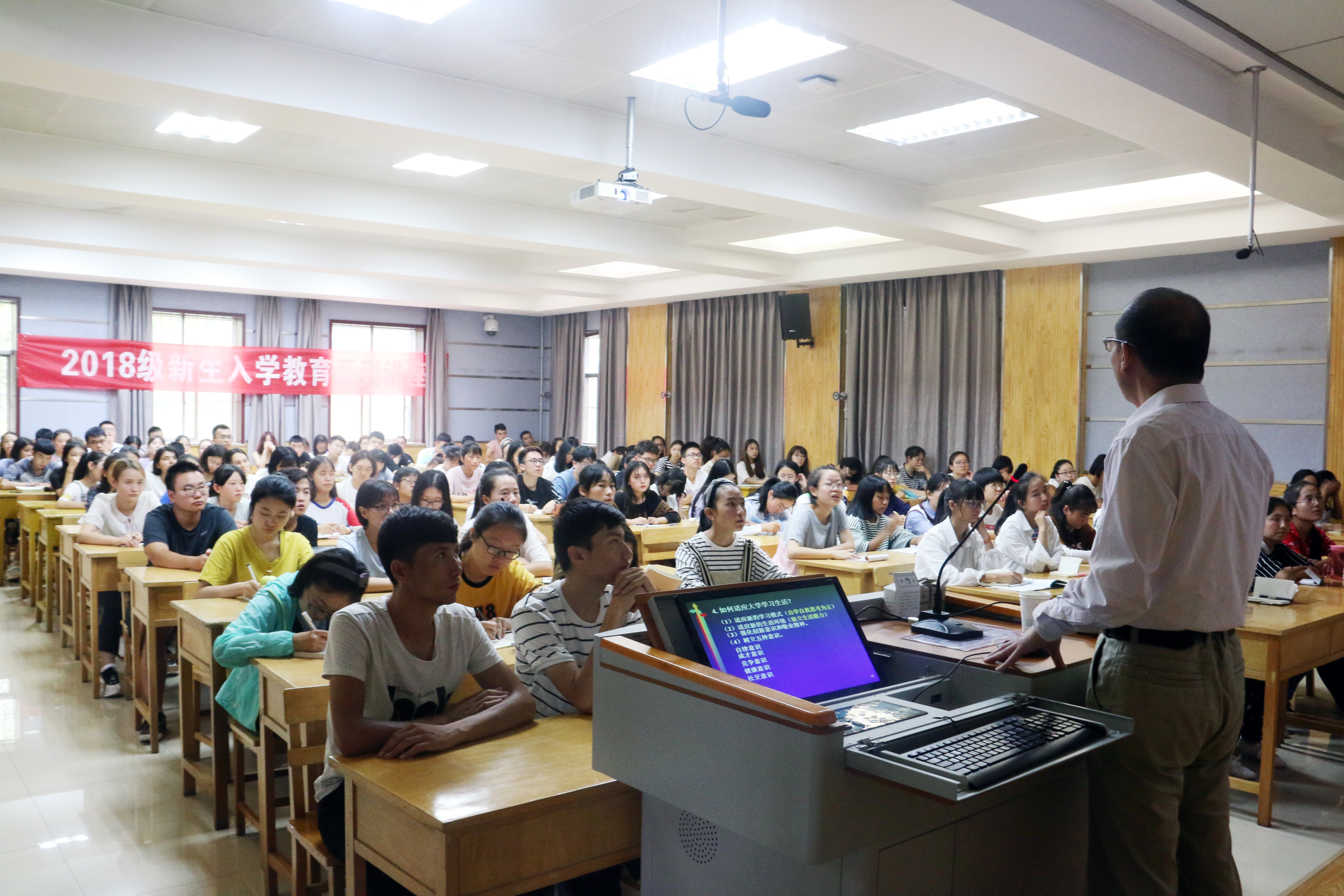 2018年9月13日下午,我院2018级预科新生入学教育系列讲座第三讲在我校雁塔校区5号教学楼5301教室开讲。本次讲座由我院杨维平教授主讲,讲座的题目为《少数民族学生大学阶段学习规划与成才报告》。旨在为进一步加强新生的思想教育工作,引领当代少数民族大学生树立先进的学习理念,帮助他们培养勤于思考、善于学习的良好习惯。我院预科生专职辅导员热依木、兼职辅导员许珊、王国昌和141名全体预科新生参加了此次讲座。