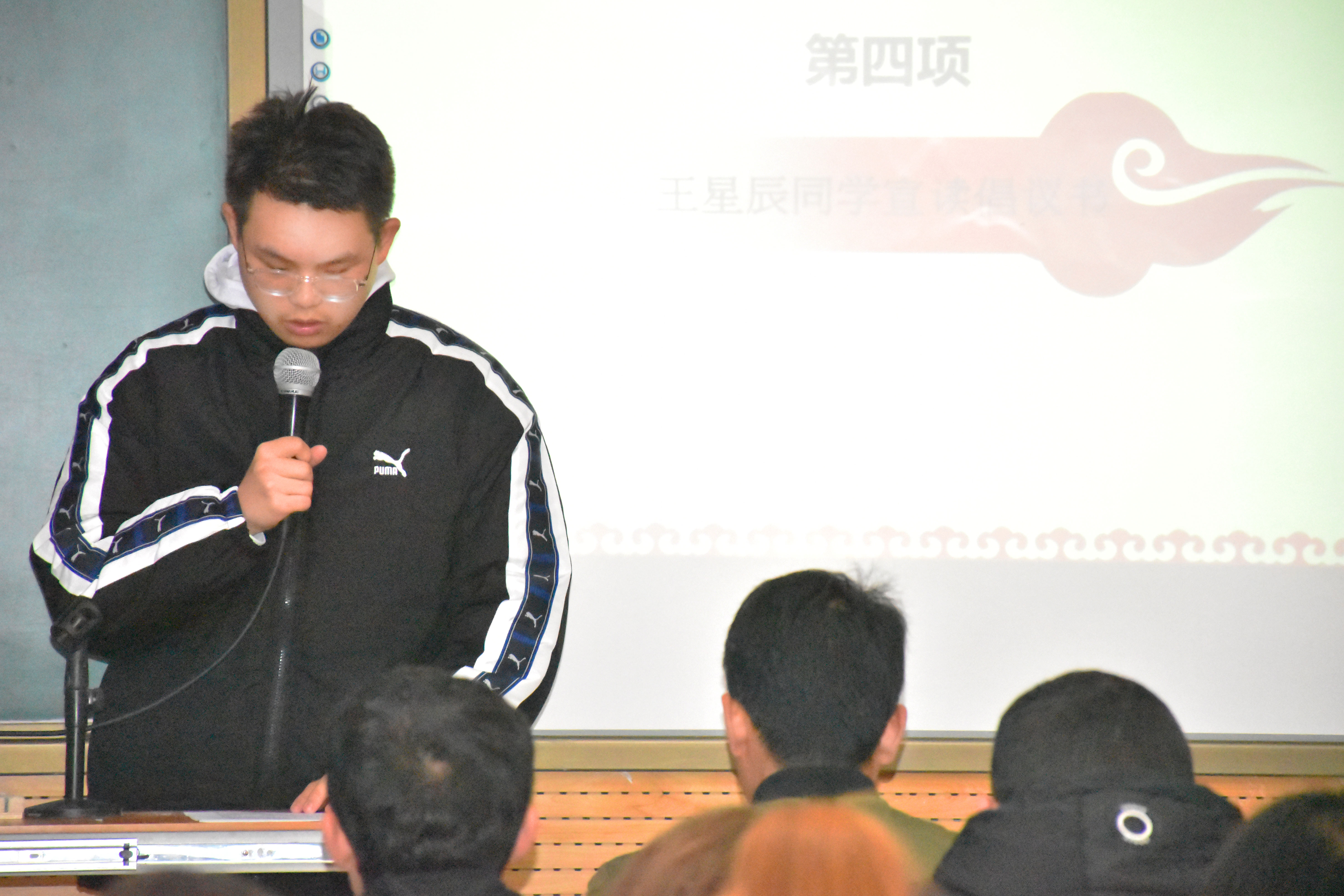 之后,由王星辰同学作为学生代表宣读倡议书,他说,“微笑待人,会让别人觉得你很好亲近,从而交更多的朋友,在复杂多变的社会之中人脉关系是必不可少的,所谓的高冷只会让你变成一个被孤立的人,与大家格格不入。在宿舍里,大家都是笑脸,没有不耐烦,没有敌意,也就可以让我们办事效率得以大的提高”。
