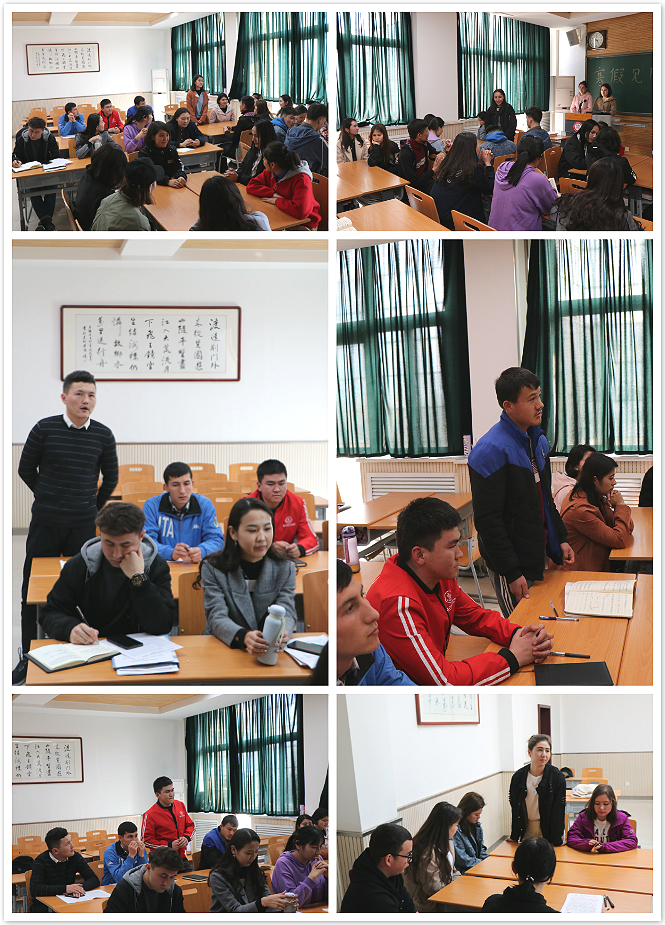 辅导员热依木老师给同学们分享了他自身最近关于中国宏观经济最新走势的学习感悟:关于中美贸易战,关于生态文明和供给侧结构性改革、关于“一带一路”战略等。他鼓励同学们多读书多关注时事政治,家事国事天下事,事事关心;兼职辅导员老师也分享了自己在寒假期间的所见所感同时各自对本次的寒假见闻分享会做出总结,表示同学们的寒假时光都过得都很充实很快乐,在祖国成立70周年之际,同学们作为各个少数民族的骨干和未来力量,作为新时代的莘莘学子和优秀青年,应当以学习为己任,以社会责任为担当,奋勇争先,在新的学期里勤奋学习,积极的参加各项集体活动,增强自身学习能力和提高自身素质,为班集体建设奉献出自己的力量。