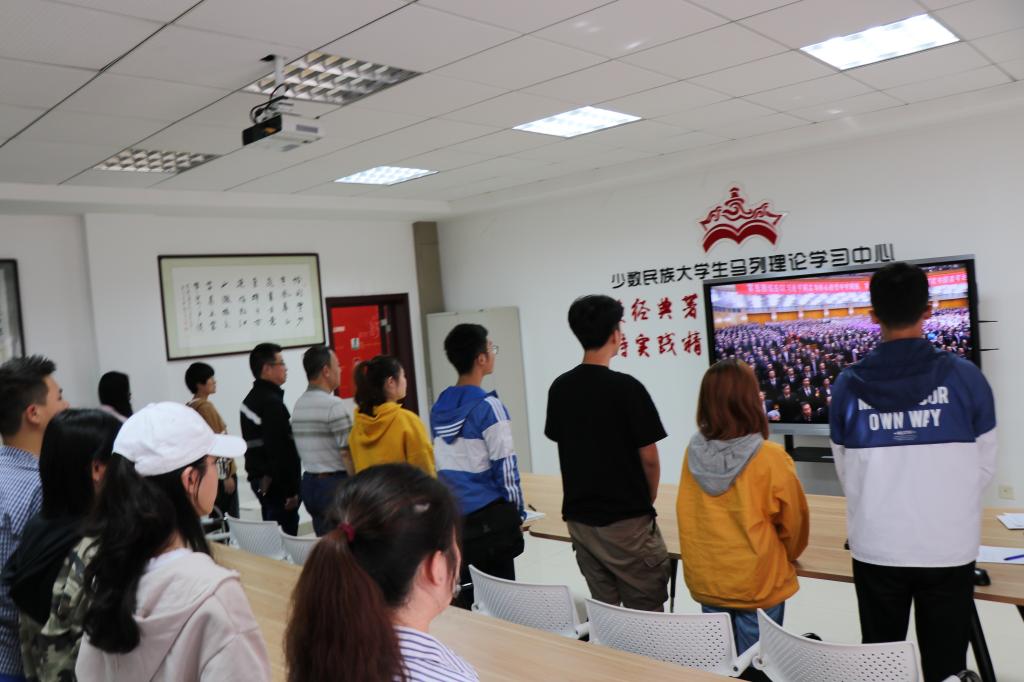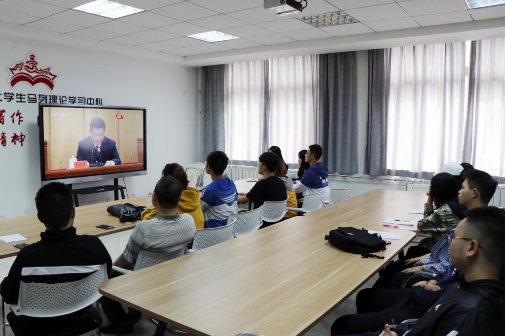 团委组织师生收看大会直播盛况,学习领会习近平总书记重要讲话精神。学院党总支书记郑生忠、党总支副书记窦文阳、我校新疆内派服务管理教师买买提·热合曼、邹璐洁以及学院辅导员、学生团员代表参加集中观看。