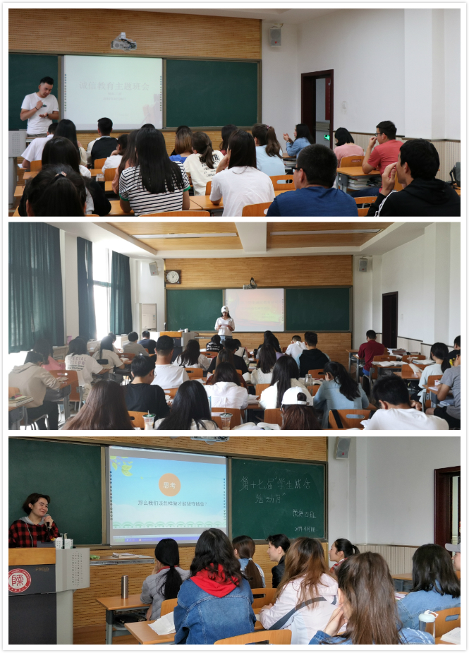 邀请学院中国语言文学教研室教师卢静和谢欣然老师在各预科班固定教室分别就“践行诚信、敢于担当”“大学生不良网贷行为及其影响”、“奖助学金申请、考试诚信”及“如何建立个人诚信档案”等主题做了诚信专题报告。