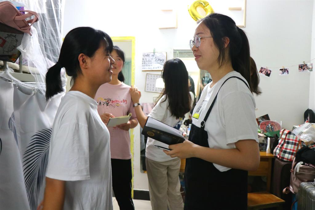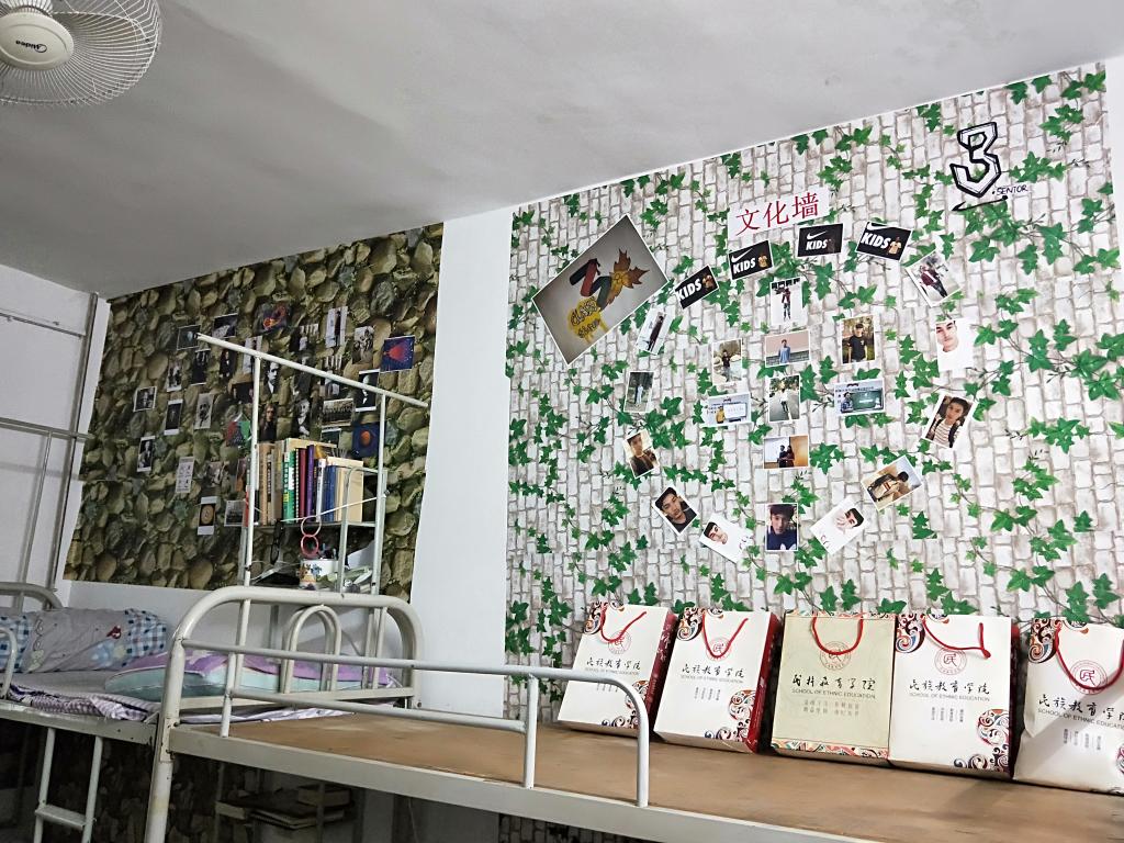 专职辅导员仔细走访每个寝室并和同学们亲切交流,关心他们近期学习、生活和参加活动情况,鼓励同学们在学习之余,注重寝室文化建设,打造校园文明软实力。接着,辅导员就宿舍卫生、宿舍安全、宿舍文化建设等方面对同学们做出了强调。他表示,大家应该将“一学一做”、团课学习与宿舍文化建设相结合,在日常宿舍生活中制定舍规,轮流值日,积极营造干净整洁舒适的学习型宿舍环境。提醒同学们注意用电安全,离开宿舍要拔除电源插头,杜绝出现手机空充等安全隐患。此外,对于同学们在宿舍文化建设时,采用张贴海报等方式学习习近平总书记的语录,铭记坚持党的领导表示肯定和表扬。鼓励大家要在日常生活中关心时政,积极响应党的号召,将成为新时代的骨干力量和优秀人才而不断努力。最后,他希望同学们能够珍惜同学情,宿舍情,在这个多民族的大家庭中携手共进。