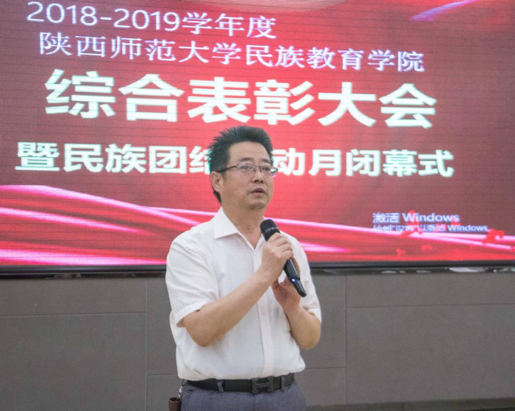6月19日下午,我院2018-2019学年度学生综合表彰大会暨民族团结活动月闭幕式在雁塔校区启夏苑二楼礼堂圆满落幕。院长冯建新、党总支书记郑生忠、副书记窦文阳,新疆内派服务管理教师买买提·热合曼、邹璐洁、孙国强,教师代表段亚绒、赵辉、马元丽、成珊娜、谢欣然、乔露、戴妍、刘丁,专兼职辅导员及学院研究生、预科生参加结业大会,大会由预科一班马迎新、韩希玥、预科二班邹粤龙与预科三班艾利同学主持。