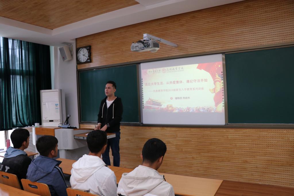 为使2019级预科新生能够更好地适应大学新生活,了解学校、学院的各项规章制度,促进新生对学院的认知度和归属感。我院专兼职辅导员以入学教育为契机,利用晚点名和晚自习时间在各预科班开展了以《育人先育德,育德先育心》为主题的新生入学教育活动。