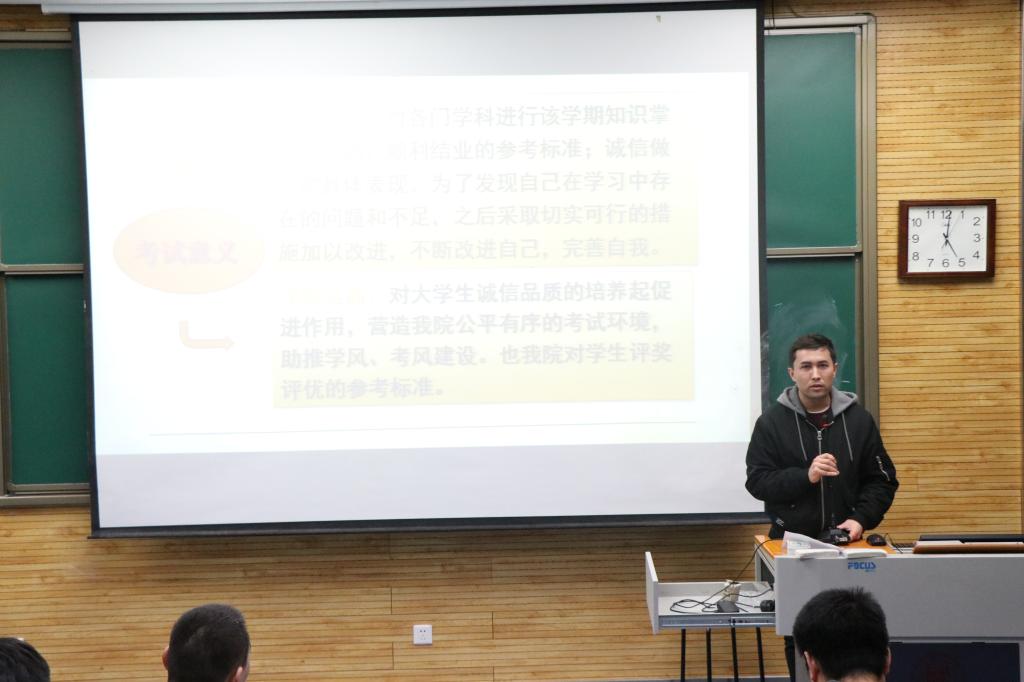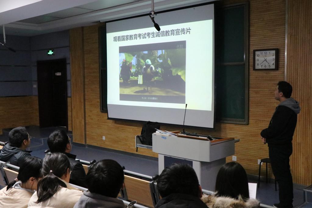 接下来,我院团总支书记赵超类举了以往我校和学院考试中出现的考试作弊典型事件和受到处分的案例,对诚信考试做了详细说明,希望同学们引以为戒,积极备考,诚信应考。