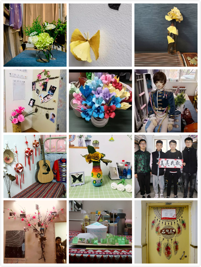 在宿舍评比的活动中,每个宿舍都展示了他们的手工艺品,这些手工艺品凝结了所有宿舍成员的创意与努力,各式各样的手工艺品让我们体会到了我院学生富有创造性的动手能力和灵动跳跃的思维,充分地体现了新生代大学生的创新意识。