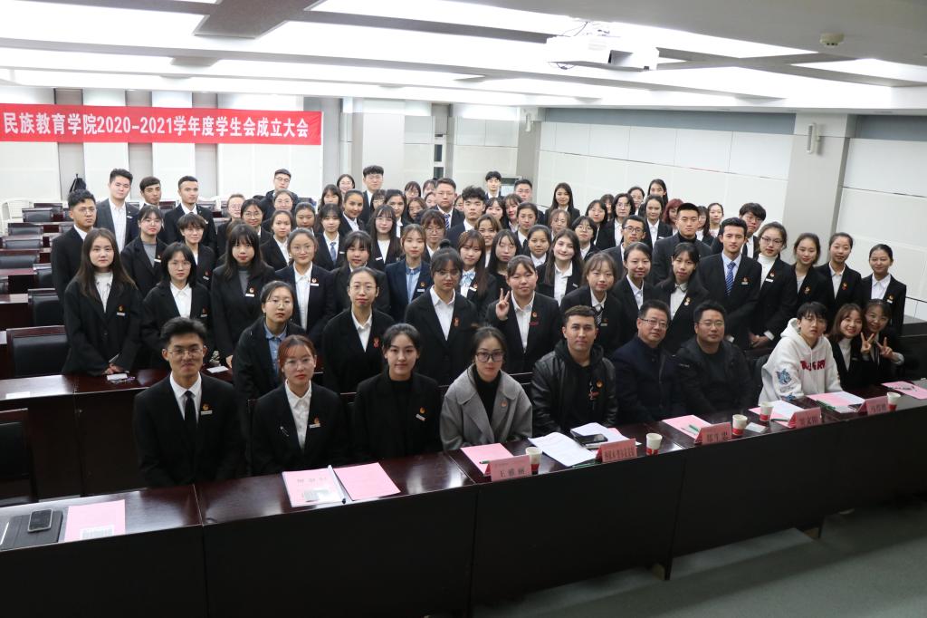 2020-2021学年度学生会成立大会在崇鋈楼二层闻道堂举行。参加本次大会的有学院党总支书记郑生忠、党总支副书记、副院长窦文阳、专兼职辅导员热依木、王雅丽、2019级学生会主席马得胜、新一届学生会全体成员及各班班委。本次大会由预科一班苏雯雨、预科二班马博亚主持。