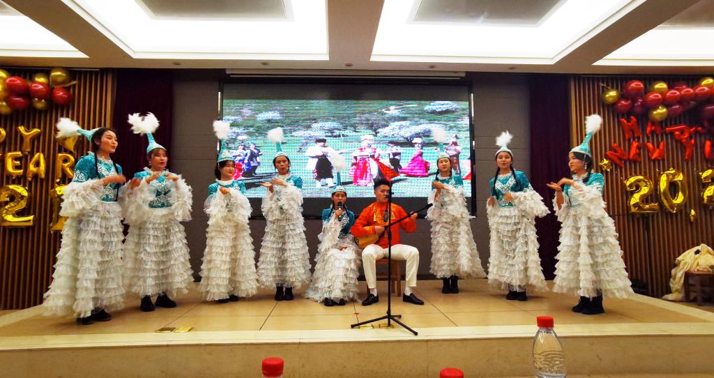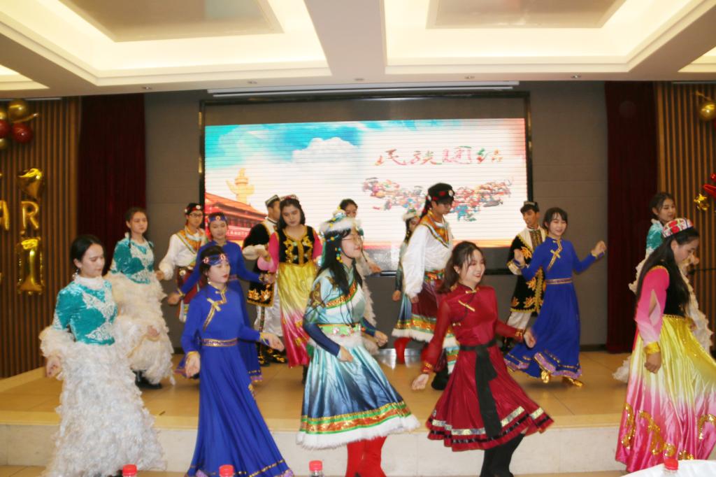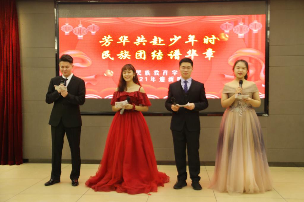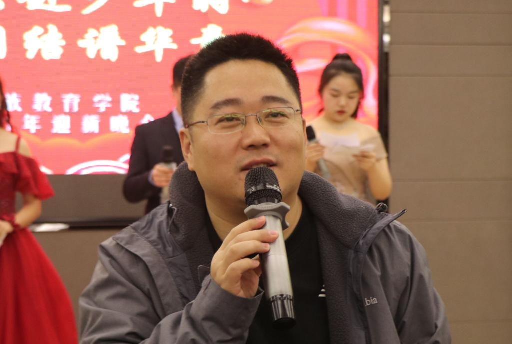 为庆祝我院成立四十周年,迎接2021新年的到来,12月19日19时,由我院学生会主办,以“芳华共赴少年时,民族团结谱华章”为主题的迎新晚会在我校雁塔区启夏苑二楼多功能厅拉开帷幕。党总支书记郑生忠,党总支副书记、副院长窦文阳,新疆内派管理服务教师买买提·热合曼,孙国强,教师代表段亚绒、戴妍、乔露、高立权及各班辅导员出席本次晚会。