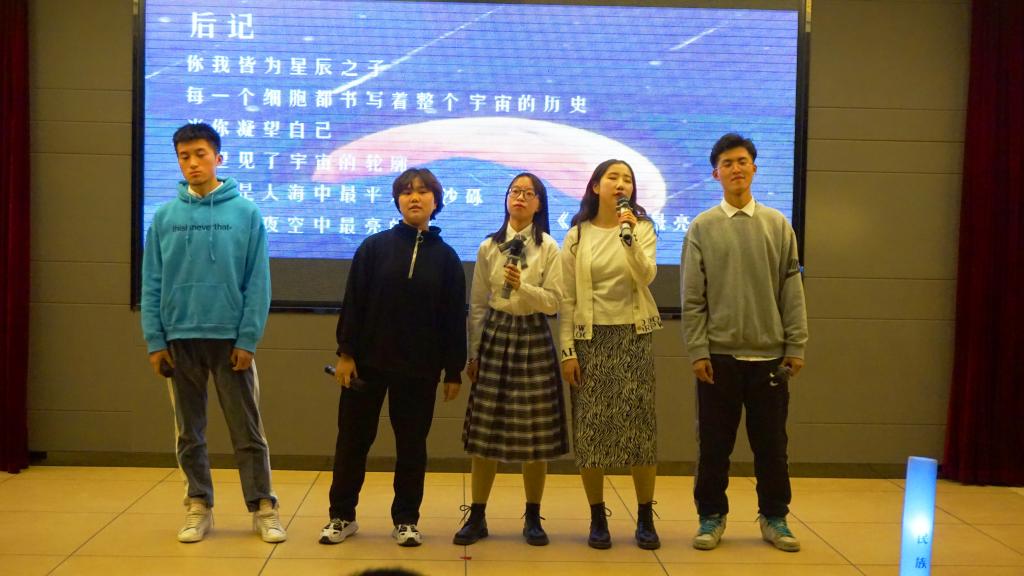 晚会伊始,工作人员放映暖场视频,视频中有来自我院老师、同学们对新年的祝福,还有开学以来同学们共同成长的点点滴滴,更有兄弟学院对我院的新年祝福。窦文阳老师为同学带来新年致辞,向大家表达了新年的祝福,同时希望同学们新年新气象,充满斗志,脚踏实地,胸怀梦想,不断向前。倒计时结束,炫酷的开场舞展现了民教学子的青春活力。随后主持人宣布晚会正式开始