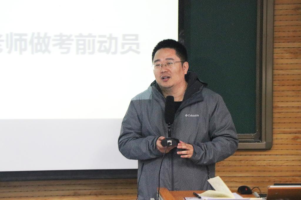 接下来,我院党总支副书记窦文阳老师做期末考试动员讲话。首先,窦老师类举了以往我校和学院考试中出现的考试作弊典型事件和受到处分的案例,对诚信考试做了详细说明,希望同学们引以为戒,积极备考,诚信应考。其次,窦老师向同学们提出几点建议与要求:一、正确认识、高度重视,端正态度、树立自信,严肃考纪、诚信考试;二、夯实基础、理清复习思路、提高复习的效果,在本次期末考试中取得好成绩;三、尽快确立目标,明确学习任务。