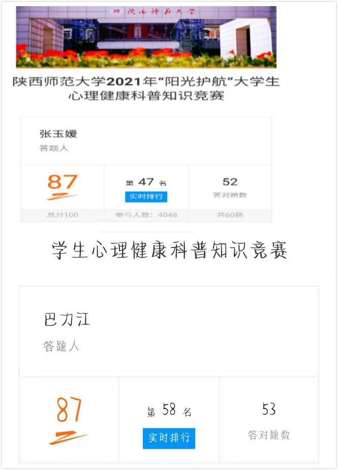 我院全体学生于4月参加心理健康科普知识竞赛。本次竞赛目的在于在大学生中宣传和普及心理健康科学知识,帮助其正确自我认知和学会心理调节,掌握积极应对压力和挫折的心理方法与技术,树立自尊自信、理性平和、积极向上的良好心态。这次的竞赛在线上开展,同学们积极地参与,诚实守信,增加了有关心理方面的知识,拓展了相关认识。纷纷表示收获颇丰。