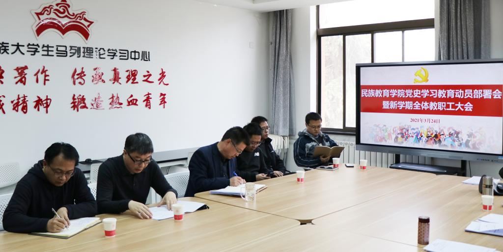 2021年3月24日下午,我院在雁塔校区六附楼305会议室召开了党史学习教育动员部署会暨新学期全体教职工大会传达学习了我校2021年工作部署会精神,安排部署了学院新学期工作以及党史学习教育工作。学院全体教职工参加了会议,会议由党总支书记郑生忠主持。