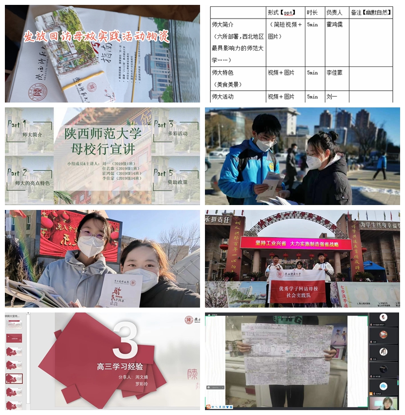预科生寒假社会实践学习活动相关要求,督促同生源地学生自由组队、自主策划、周密组织,鼓励受资助学生积极加入,以队伍形式开展母校回馈回访活动,看望曾经的师长;向学弟学妹们分享学习方法、学习经验和大学生活感悟;介绍宣传学校预科招生、资助的相关政策,搭建了学校、学院与其生源地之间的沟通交流平台。学生们在活动中追忆母校、恩师带给他们的成就与收获,感受感恩回馈的真谛,激发了不断学习、坚持奋斗的昂扬斗志。