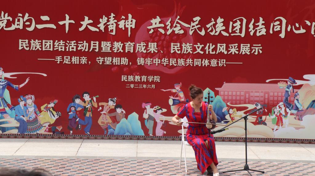 的一项传统特色活动,也是学院深入推进民族团结进步创建工作的一项重要举措。民族团结活动月的开展为广大学生展示自我、表达自我提供了舞台;也为促进全校各民族师生深入了解、深入交往搭建了桥梁。他寄语同学们,要充分认识本次活动的重要意义,在展示中促交流、在交流中促融通、在融通中促团结,深刻理解党的二十大精神重要内涵,铸牢中华民族共同体意识,真正做到共绘民族团结同心圆!