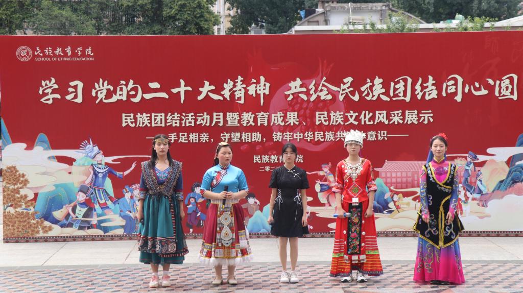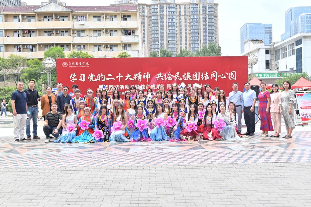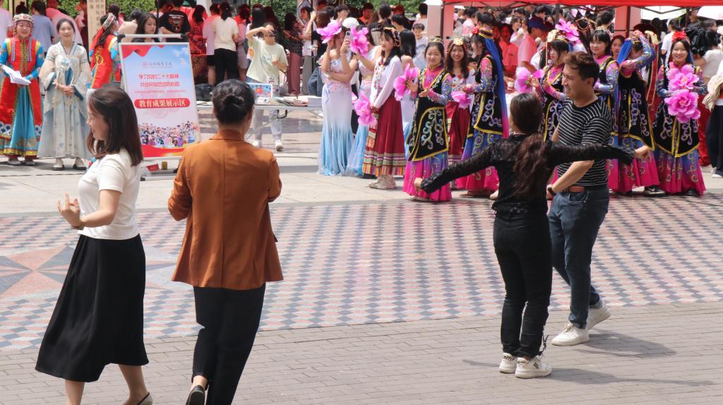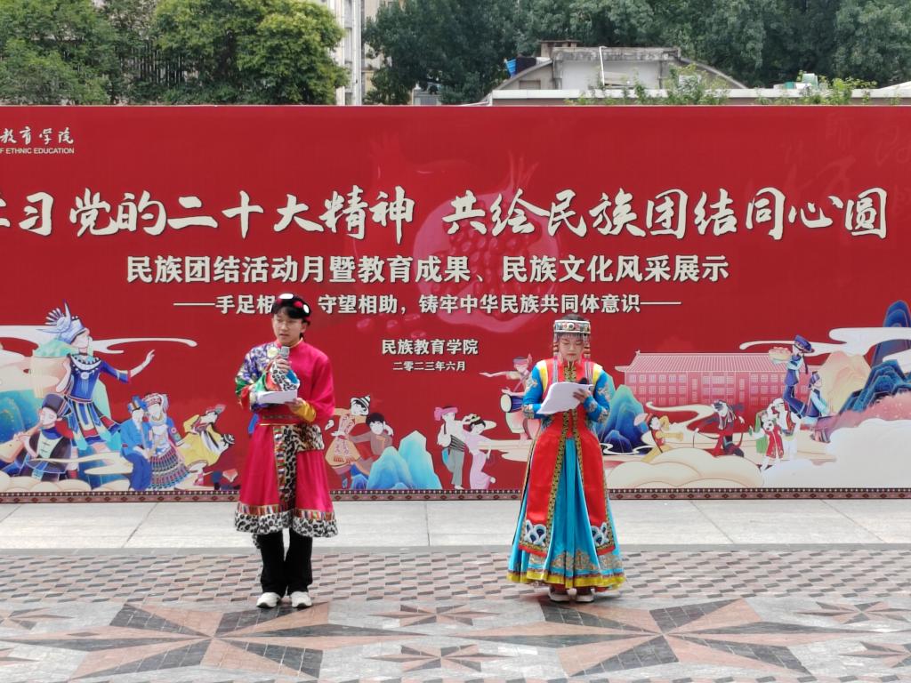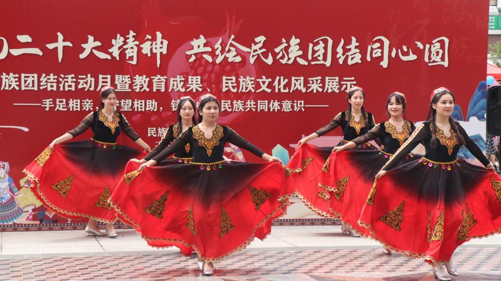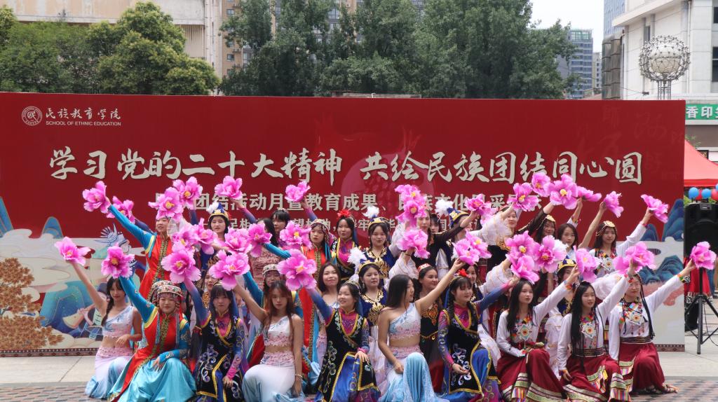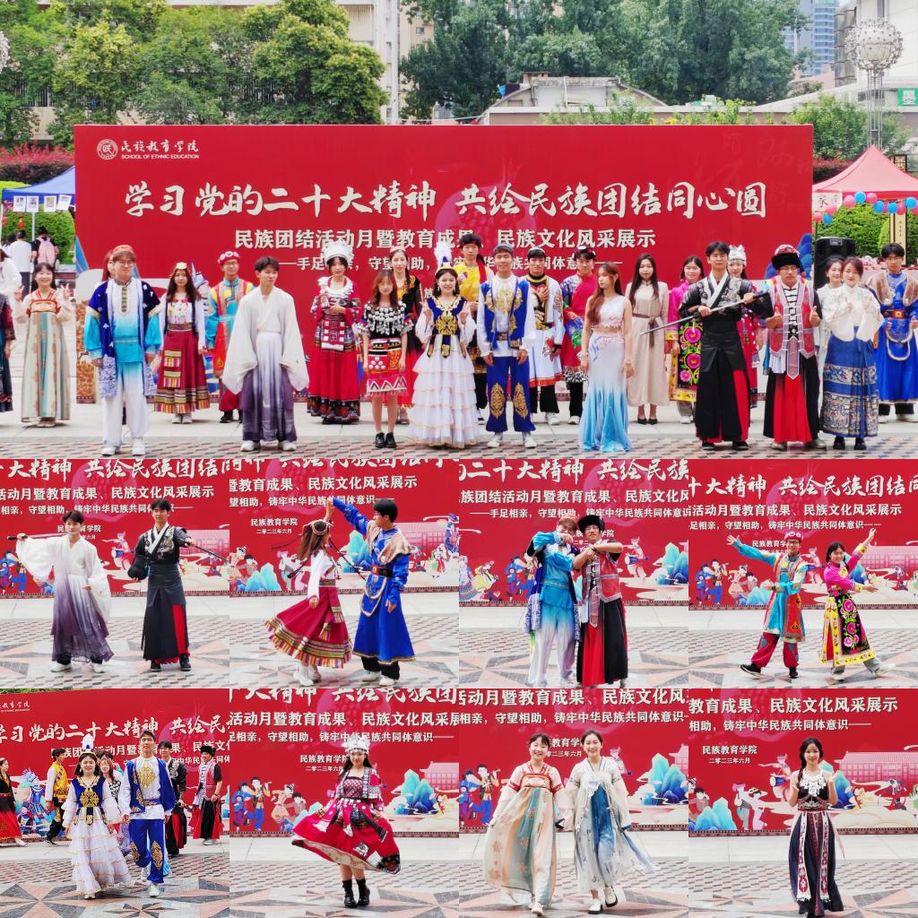 在雁塔校区喷泉广场隆重举行“学习党的二十大精神,共绘民族团结同心圆”民族团结活动月暨教育成果、民族文化风采展示活动。