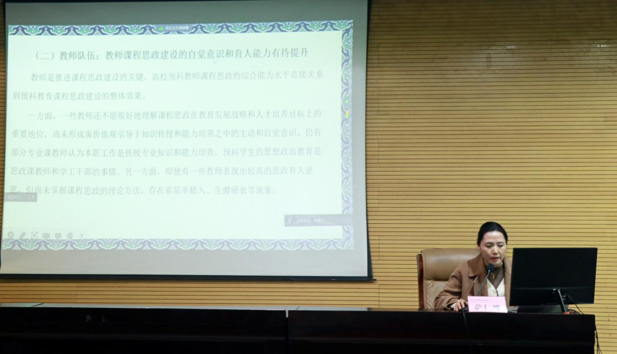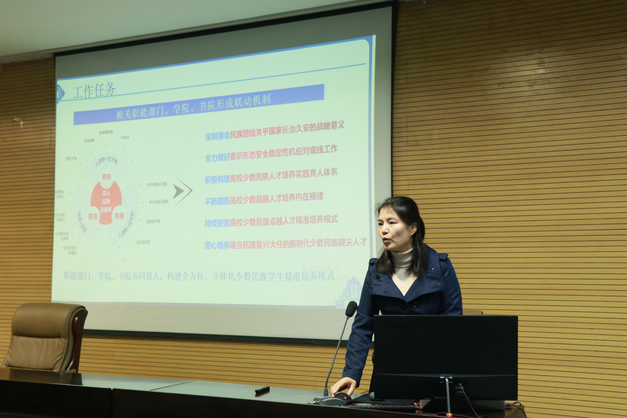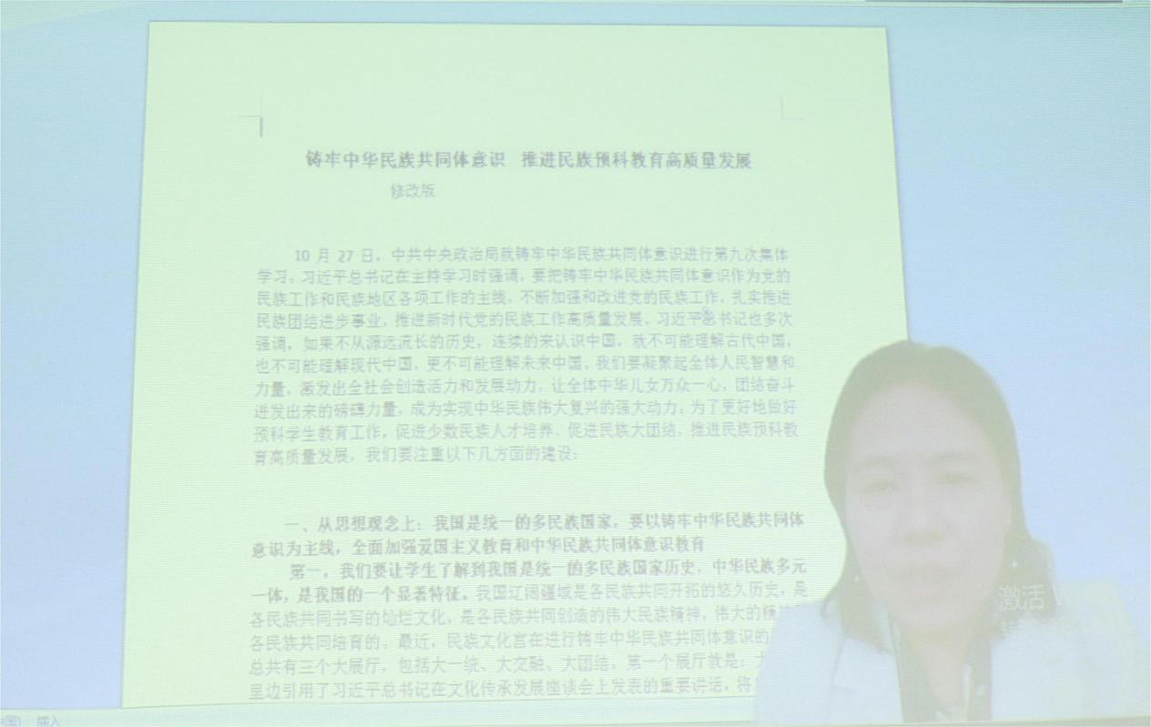 学院教师萨仁娜以课程思政建设为出发点,做了《高校民族预科课程思政助推铸牢中华民族共同体意识:现实困境与实现路径》专题报告,着重阐述了如何开展“课程思政”建设,有效铸牢预科学生中华民族共同体意识,使之成为新时代提升高校少数民族预科教育质量、人才培养能力的重要抓手。