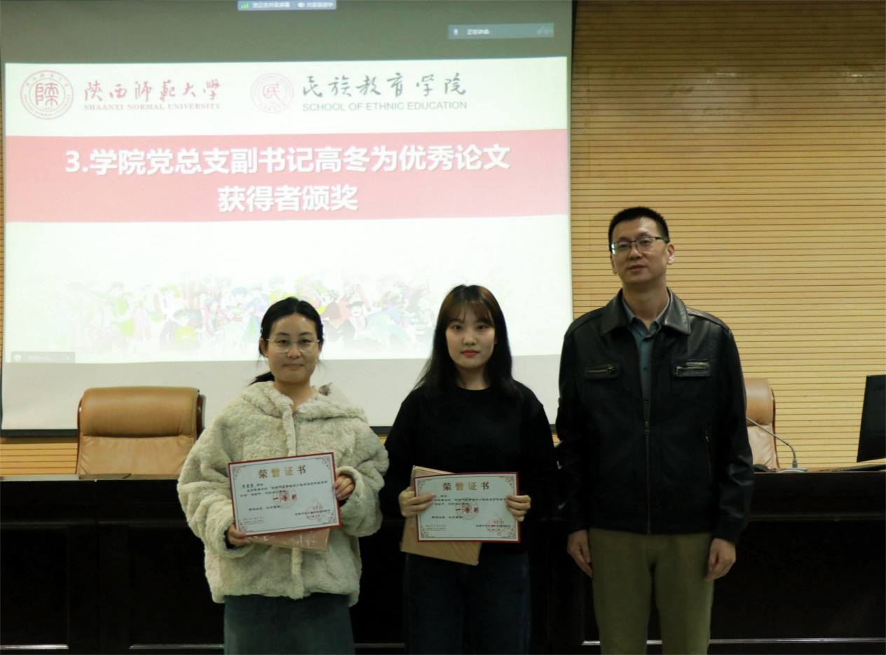 党总支副书记高冬为预科教育研究专题征文活动中的获奖同学进行颁奖。