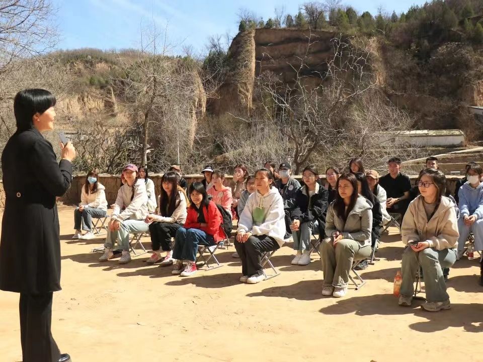 在梁家河延川县委党校副校长、高级讲师袁红叶则为学生作了以《习近平的知青情怀和他的实干担当》为主题的现场教学。娓娓道来的故事,再现了习近平总书记的知青岁月和成长历程,广大师生们切实感受到习近平总书记个人的理想追求、家国情怀和优秀品质,在心里默默立下以习近平总书记为榜样,坚定理想信念、踏实作为,锤炼品格,用实际行动书写无悔青春的誓言。