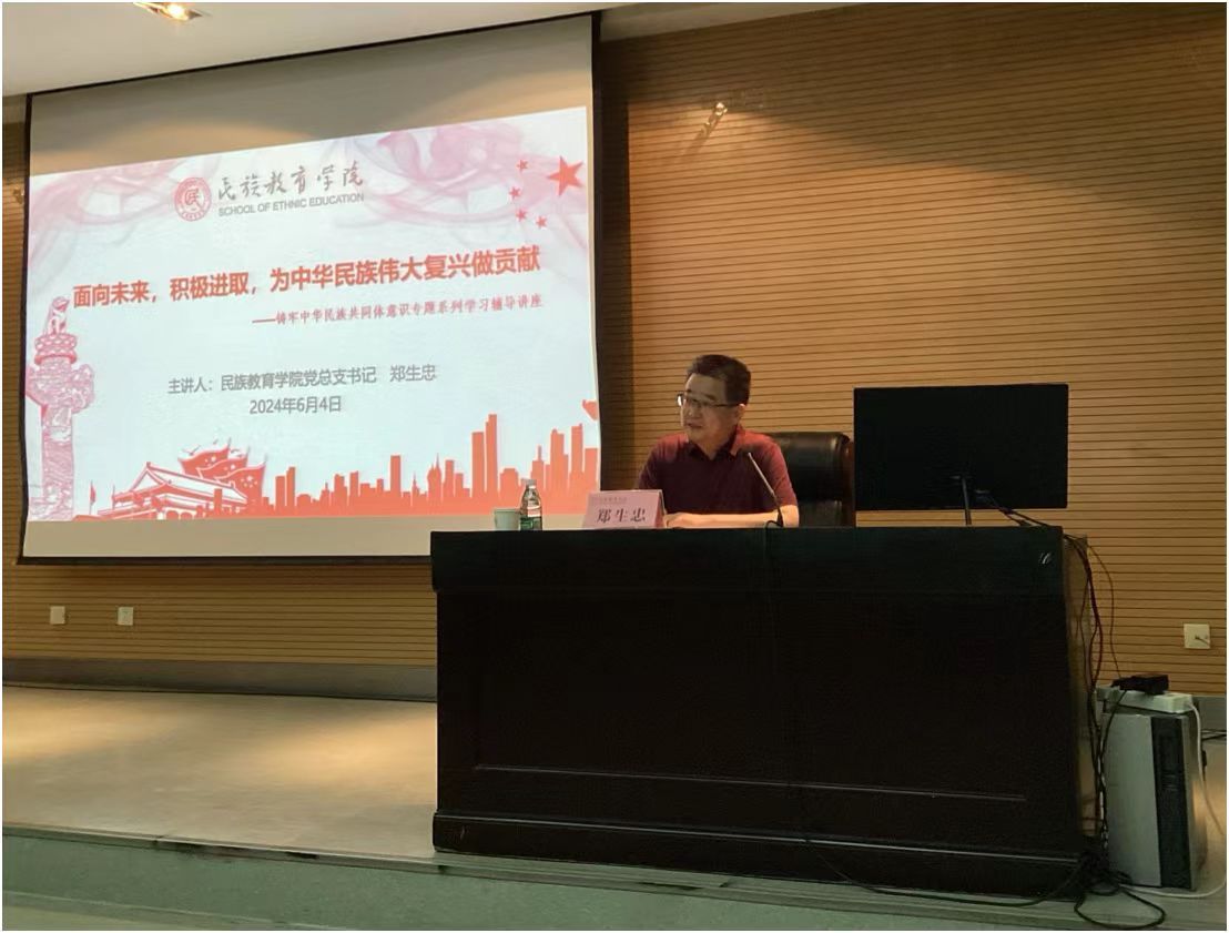 讲座中,郑生忠指出,铸牢中华民族共同体意识是当代中华文明承继过去、面向未来、走向世界所提出的全新课题,亦是几千年来中华民族繁衍生息、不断进取的新征程和新任务。他强调,青年学生代表着中华民族走向未来的新生力量和中坚力量,也即将成为服务于中华民族伟大复兴的主力军,在此关键时刻,如何正确认知自己的角色和任务是每个青年学生都应回答的时代之问。