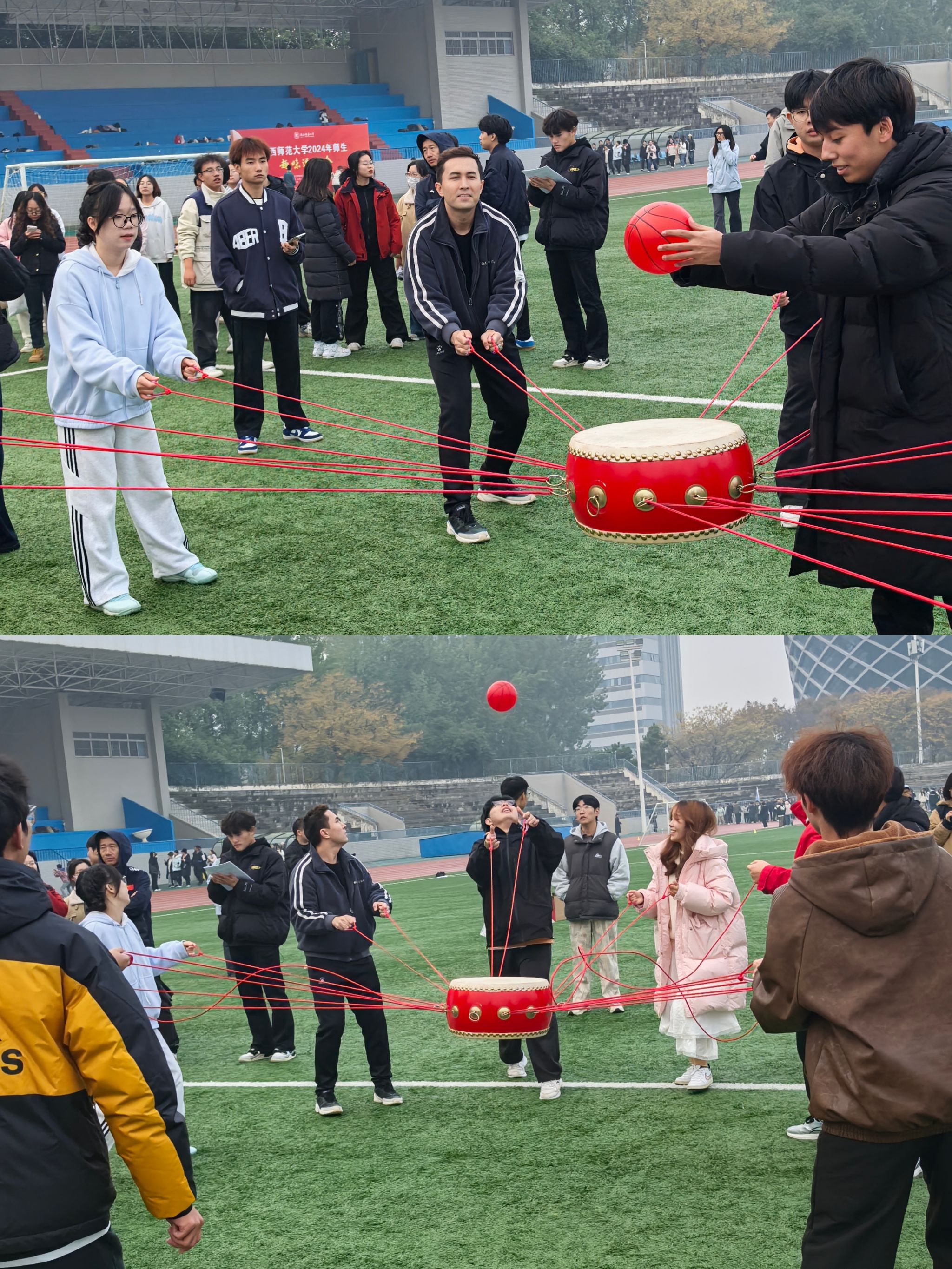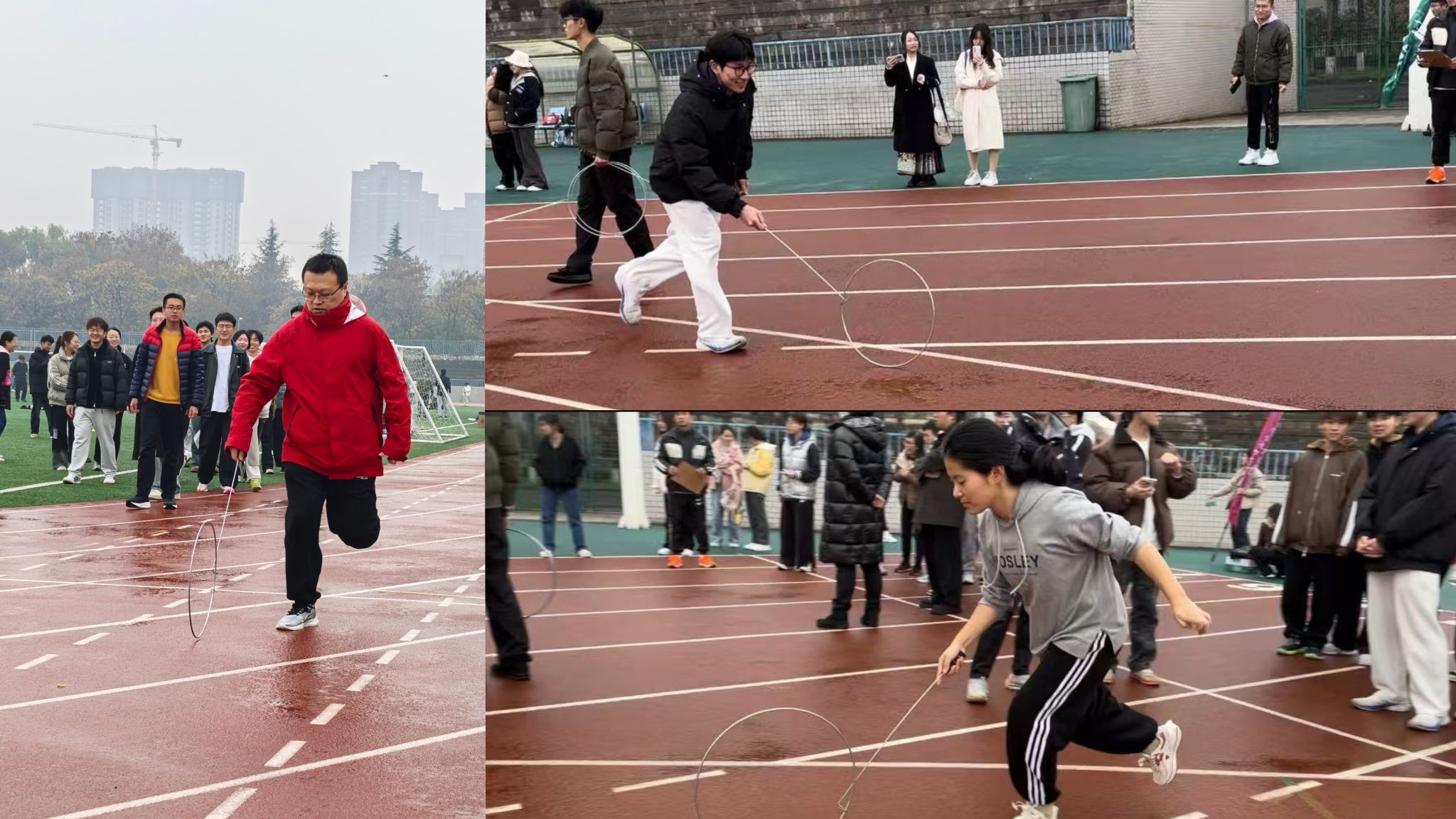 在比赛中,学院师生不仅展现了他们的青春风采,更彰显了团队的凝聚力。他们在推铁环接力、背夹球接力、小绳单摇接力中默契配合,有条不紊;在击鼓颠球、合力筑塔、毛毛虫竞速中齐心协力,迎难而上,充分体现了学院师生团结一心、共同奋斗的美好品质。