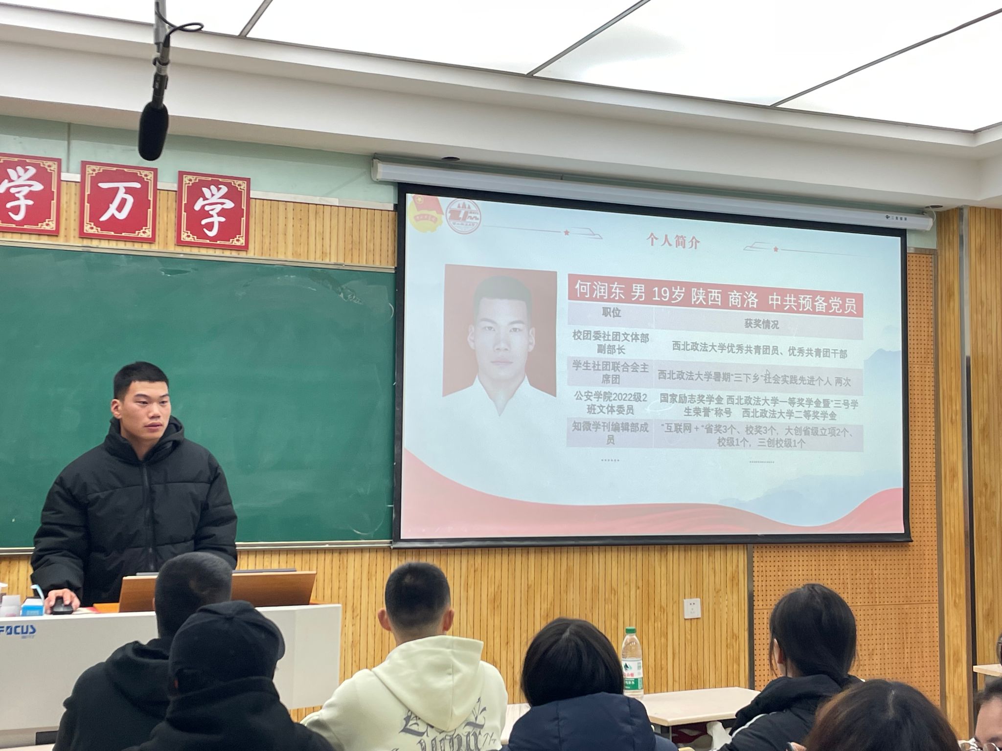实践舞台上,西北政法大学侦查学专业2022级本科生、学生社团联合会主席团成员何润东秉持“不驰于空想,不骛于虚声”理念,借自身实习实践经历,鼓励参与培训的学员们勇于尝试,提高自身对校内外机遇的感知力,紧跟时代潮流。