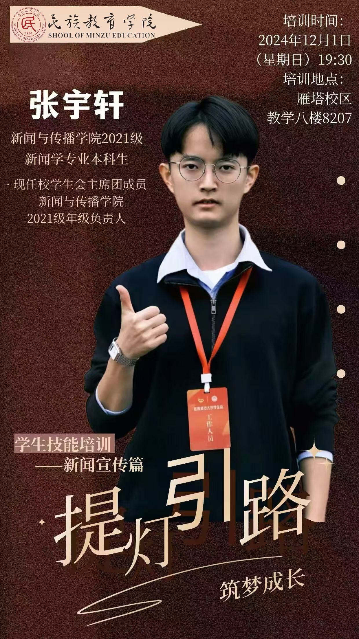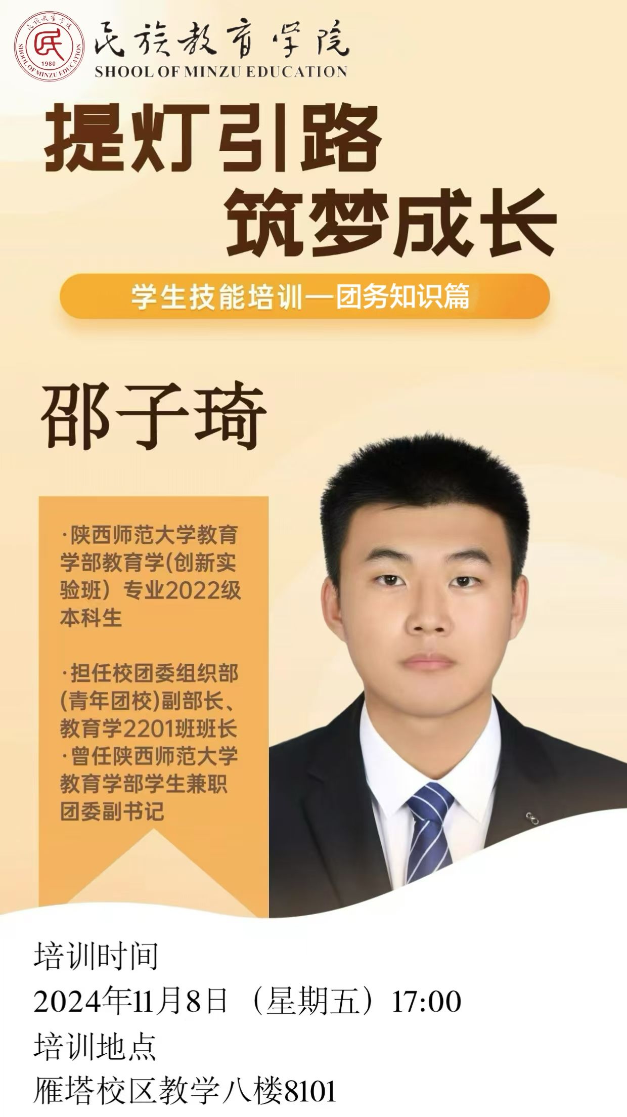 组织开展2024-2025学年度学生干部培训,精心设计实践学习、素质拓展、心理辅导等篇章,2024年11月至12月,以“提灯引路,筑梦成长”为主题的实践学习技能系列培训顺利进行。来自校内外的八位优秀学生干部分别围绕团务知识、社会实践、志愿服务、新闻宣传等内容展开了培训,学院学生组织全体工作人员和班级委员参加培训,在学院内掀起一场学思践悟、精技笃行的青春热潮。
