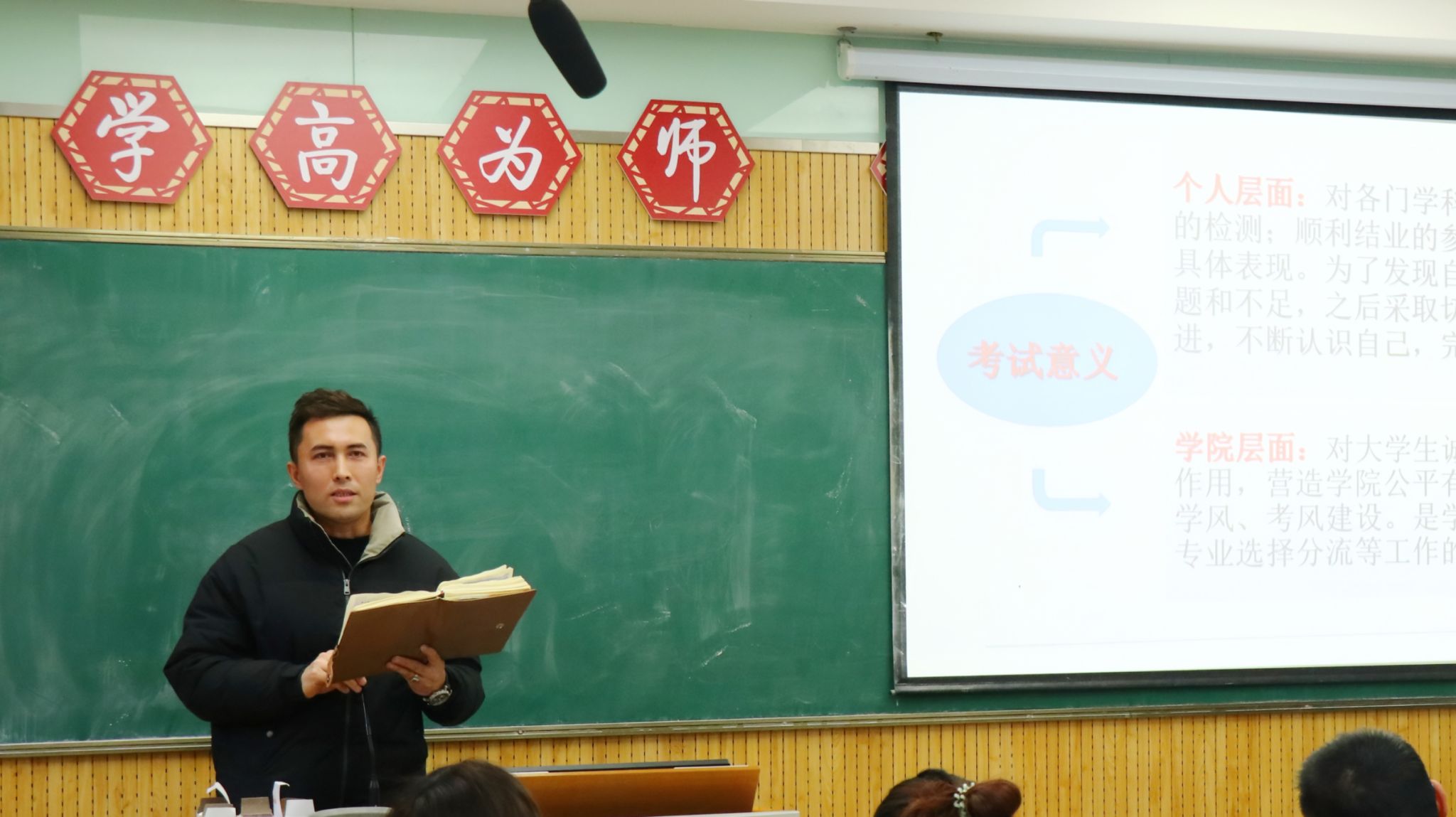 会上,热依木对本次期末考试相关要求和注意事项进行了说明和解读,并号召同学们放平心态,积极备考,遵守考场纪律,杜绝作弊行为,培养自己的诚信品质,通过考试检验在校学习成果,展现民教学子优秀的综合素质。