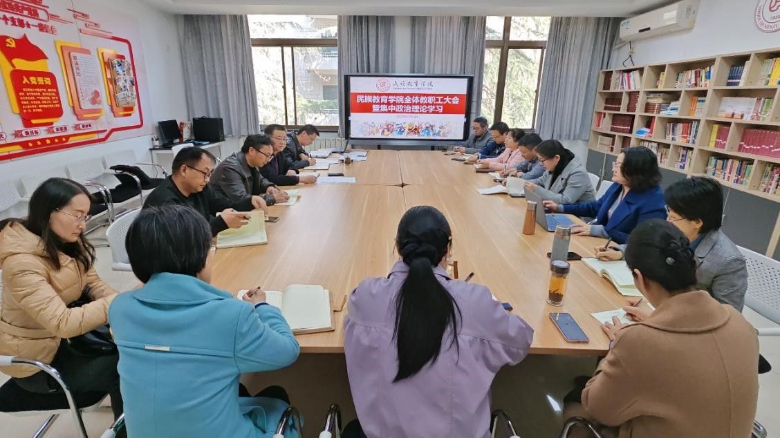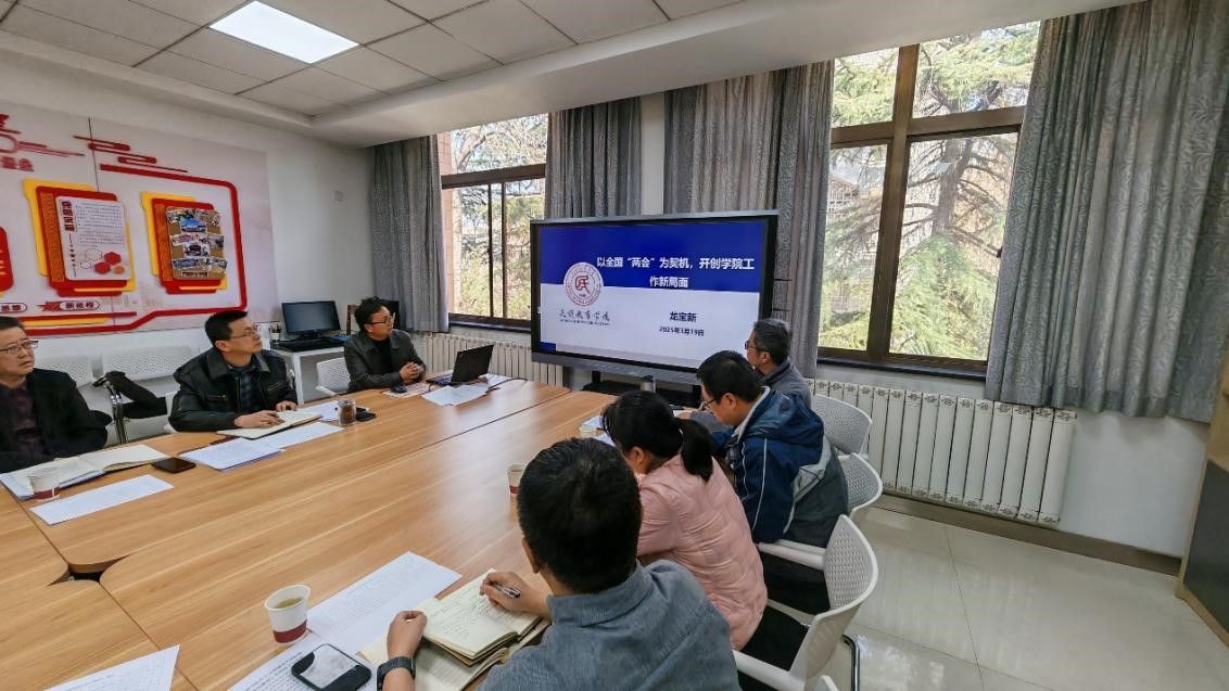随后,院长龙宝新作了题为《以全国“两会”为契机,开创学院工作新局面》的主题报告。他深入分析了学院当前面临的挑战与机遇,并从党团建设与学院治理、预科教学改革、研究生学位教育等三个方面部署了本年度重点工作。他号召全体教职工要以习近平总书记关于民族宗教工作重要论述为指南,以成功经验总结反思为起点, 以特色学工、预科教改、院风建设为支点,以组织建设、制度建设、师风建设为保障,努力提升学院工作对学校特色办学的贡献力,共同推动学院各项工作迈上新台阶。