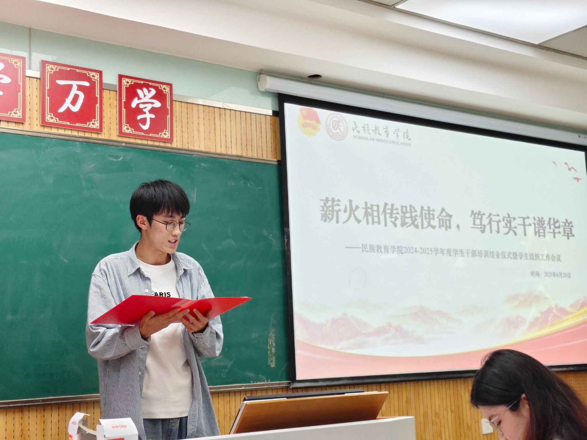 精心组织开展2024-2025学年度学生干部培训。此次培训以“铸牢中华民族共同体意识”为主线,通过六大板块系统化培养,引领60余名学生干部在理论学习中筑牢信仰之基,在实践锻炼中锤炼过硬本领,为建设高素质学生干部队伍奠定坚实基础。前期,以学院党总支副书记高冬牵头的培训领导小组对于培训体系、课程方案、内容设置进行反复打磨,精心呈现具有时代特色、符合民教学子的学生干部培训。