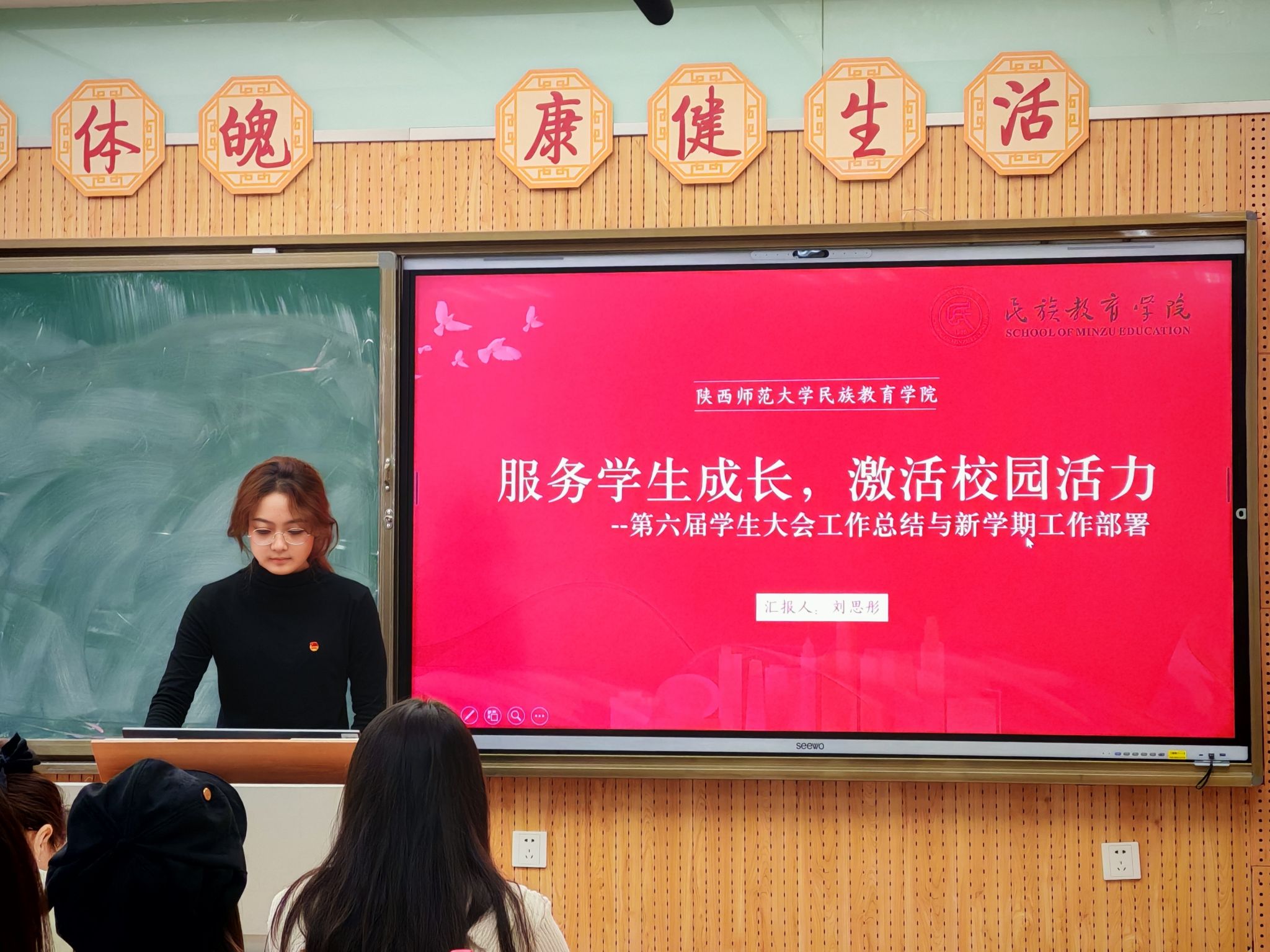 在各部门工作汇报环节中,各负责人依次就新学期工作计划与特色活动进行阐述。学生兼职团委副书记围绕思想引领方面进行工作汇报,组织部聚焦团员发展与组织建设,宣传部着力于平台创新与内容深化,权益办公室与心理生活部关注同学需求与服务保障,文艺体育部致力于打造特色文体项目,学术与创新部则以营造浓厚学风为核心。各部门分工清晰、目标明确、举措务实,展现出学生组织积极进取、勇于创新的精神风貌。